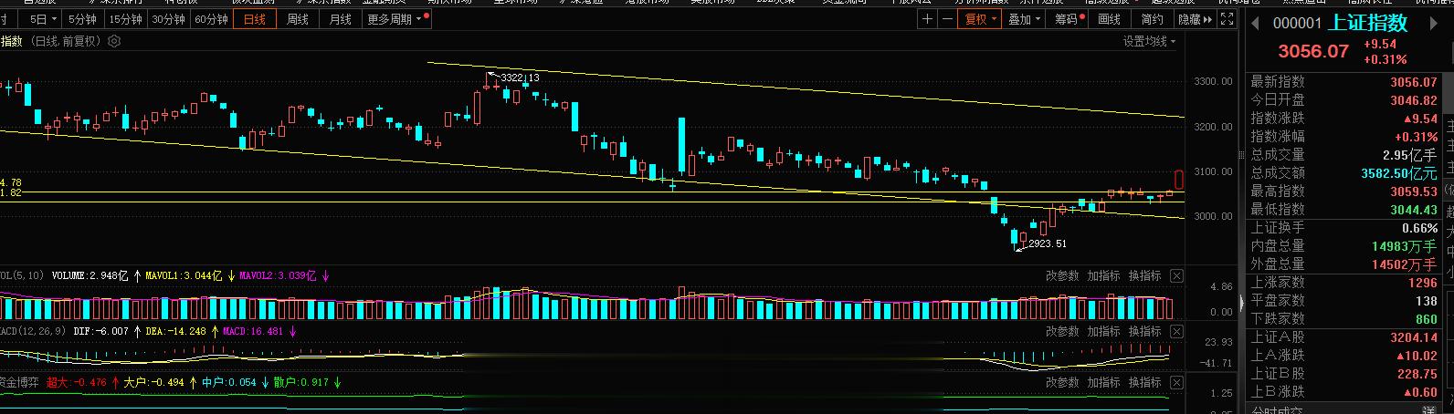 今日A股收盘价格3056点,再次的站上3050这道防线很好,接下来的思路就是3080-3100的突破了,成交量相对于昨日温和的放大了挺好的