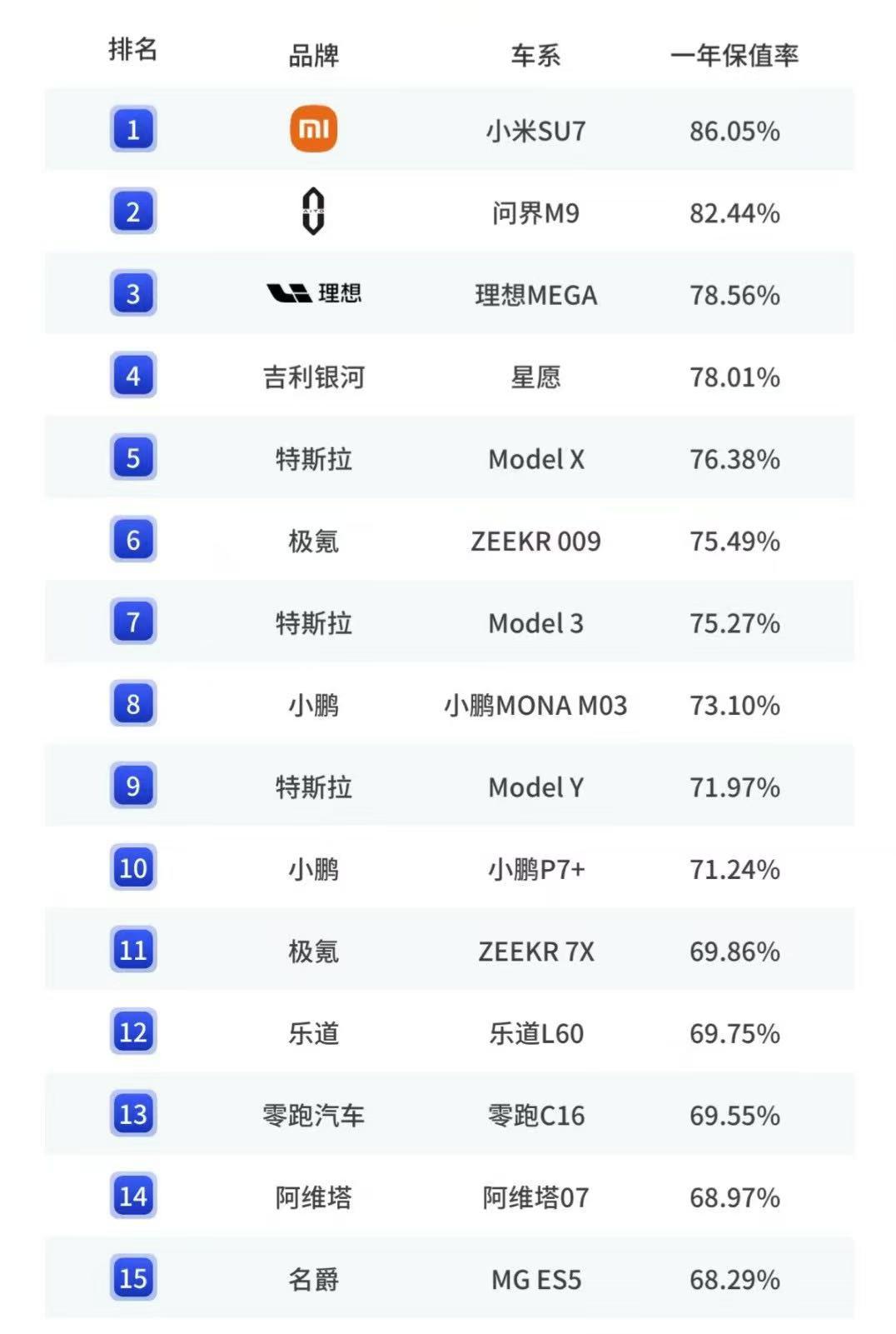 优先选择头部品牌的热门车型:像小米SU7、特斯拉Model Y这类市场保有量高、技术路线稳定的车型,其保值率更有保障。