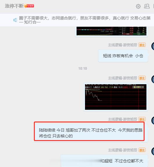 短线这块旭哥的观点一直不变,我个人更多的只去核心,自己的交易理念 交易体系,交易逻辑 只要符合有机会我就会执行,知行合一的东西不是说说就行,说不如做