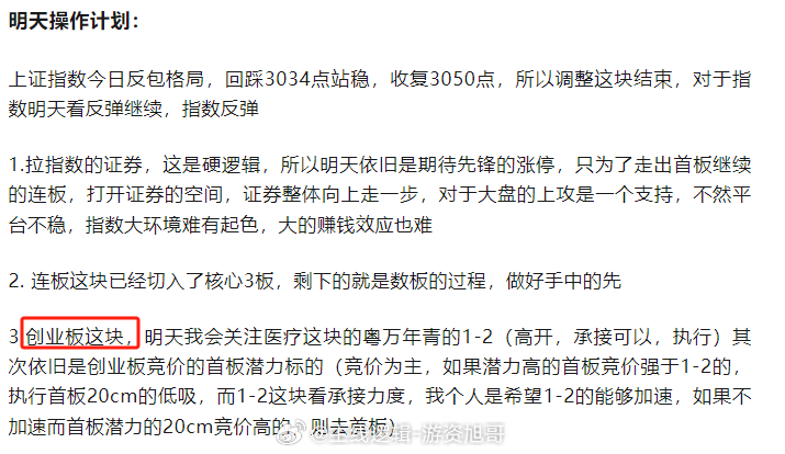 计划交易 执行交易 知行合一,旭哥昨日的计划依旧是围绕创业板 证券 这两条线,指数跌,需要证券,所以我不放弃这里的机会,短线不管行情如何,创业板这块20cm还是在上升的过程,所以龙头的1-2,旭哥一直有在等待,今天机会合适也是执行了,当下的结果,就是涨停#娜扎秒了#