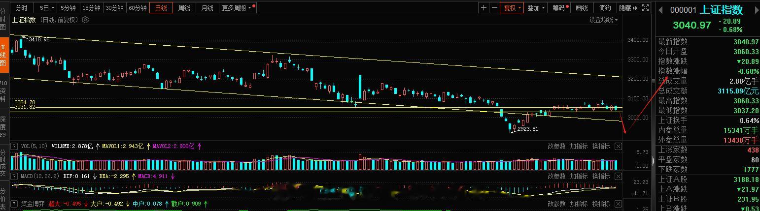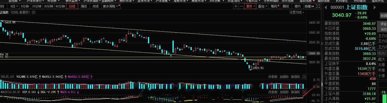 周五也就这样了,继续的缩量,还好是没有破位3034点守住了,悬念留给下周了