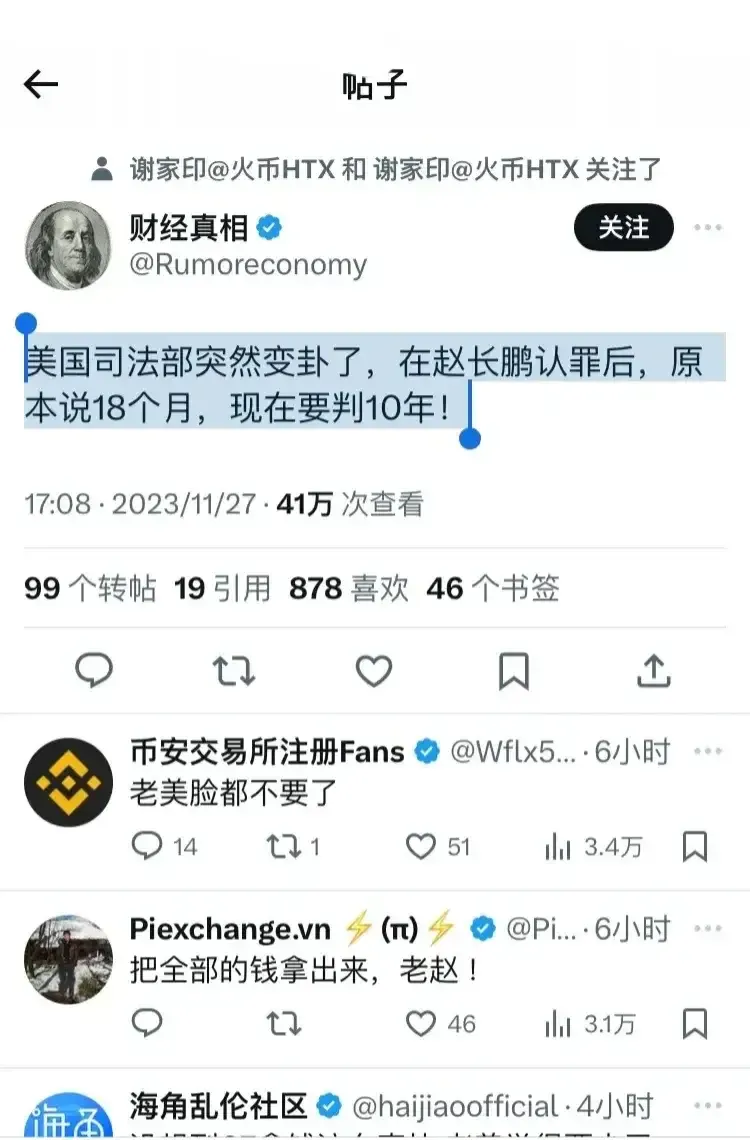 美国司法部突然变卦了,在赵长鹏认罪后,原本说好的18个月,现在要变卦了!哈哈!到