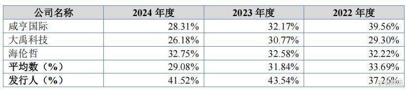 报告期各期,公司主营业务毛利率分别为37.28%、43.58%、41.53%,2023年毛利率43.58%较上年增长明显,主要由于营业收入结构变动引起的。公司毛利率水平高于与三家同行业可比公司33.69%、31.84%和29.08%。