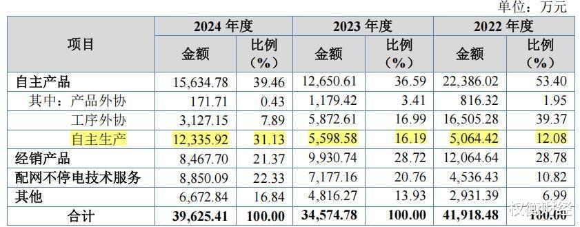 报告期内,公司产品生产中,自主生产占比分别为12.08%、16.19%和31.13%,整体呈上升趋势,主要系公司子公司莱沃科技的咸宁生产基地投入使用,公司自主生产的产品,特别是配网不停电作业专用车辆规模增长。