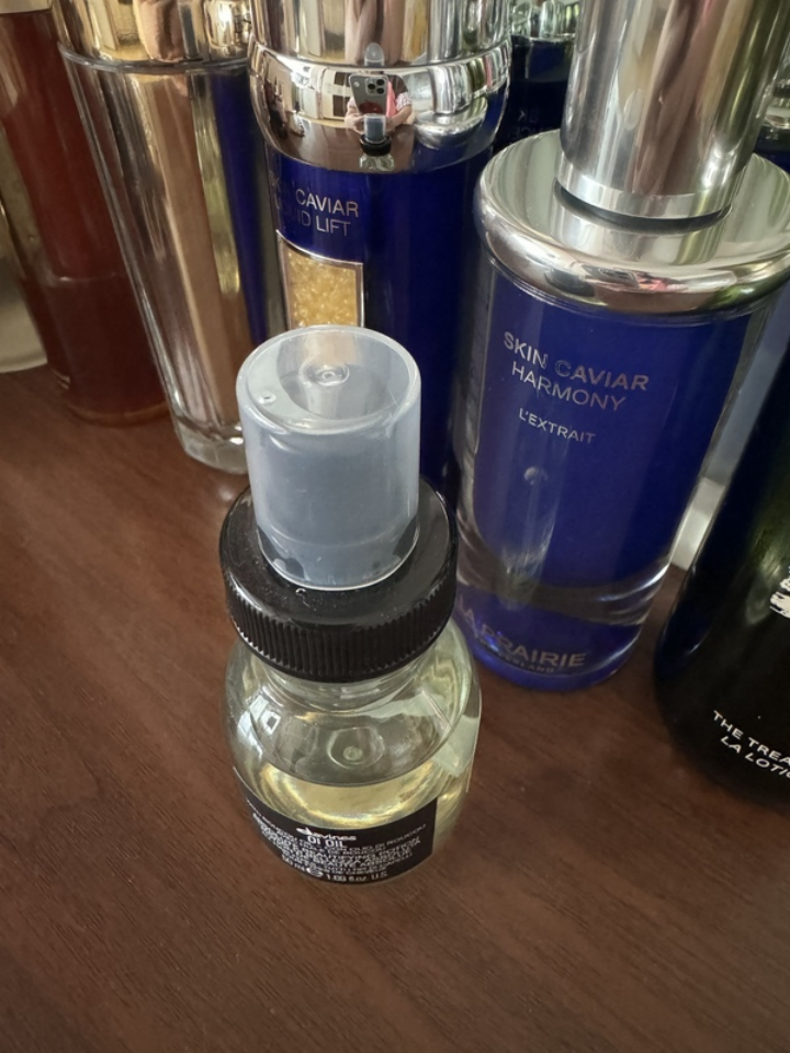 ORIBE护发精油配方整体还行,染后抹发尾吹风时,发丝没那么容易打结了。但仔细看成分,其实和普通护发精油差不太多,没什么特别出彩的地方。说是小分子能快速渗透,实际抹完得等十分钟才不觉得油乎乎,日常赶时间用着不太方便。