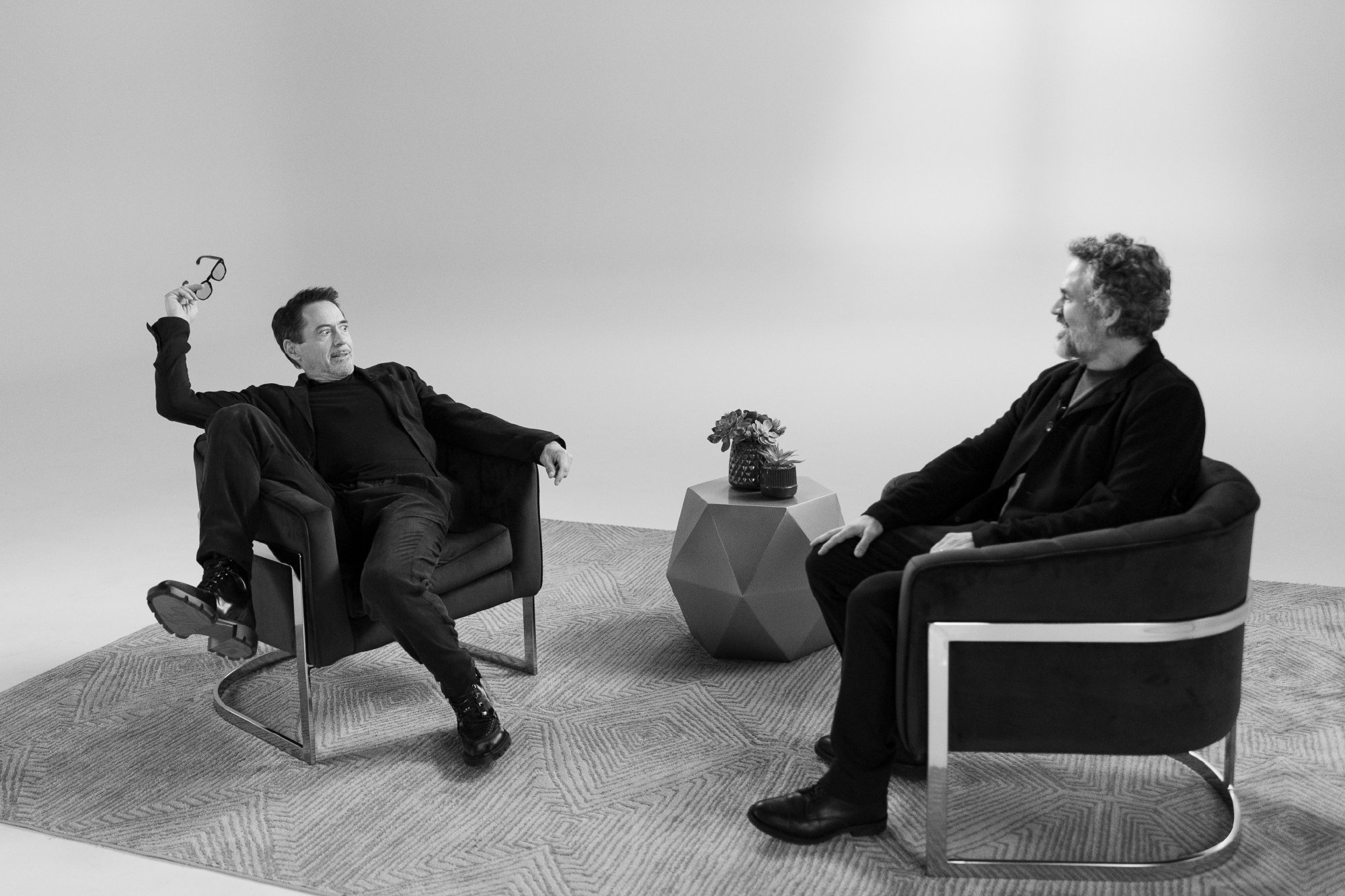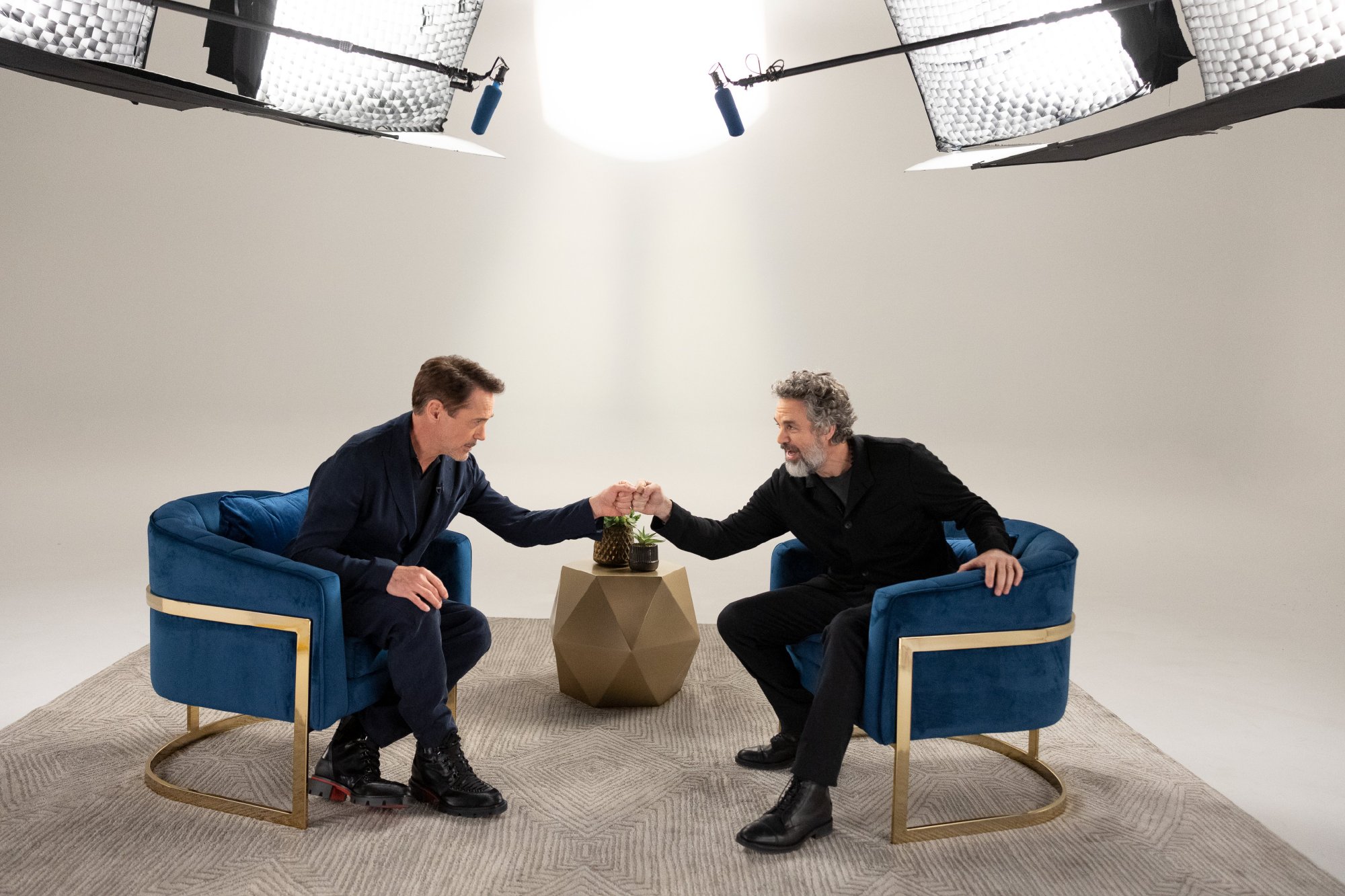 2023年《综艺》演员对谈节目发布幕后照! 漫威组“钢铁”小罗伯特·唐尼、“绿巨人”马克·鲁法洛两位老友碰拳、玩石头剪刀布、拥抱!