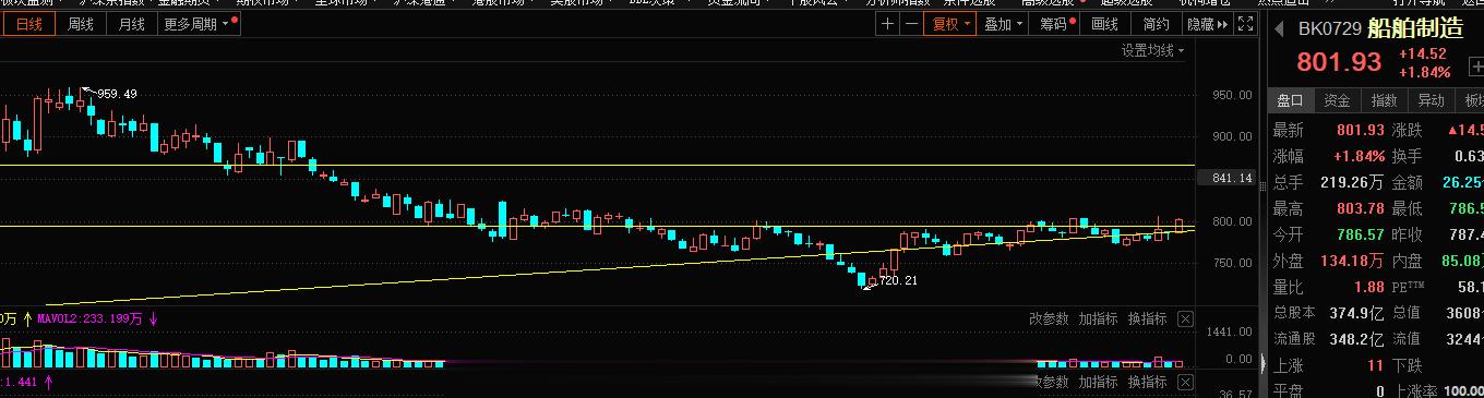 船舶今天再次的突破800点这里走强 很舒服的,继续看延续性#A股[超话]#