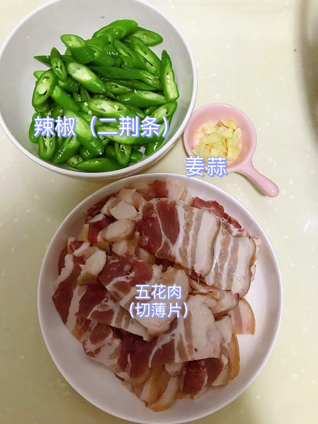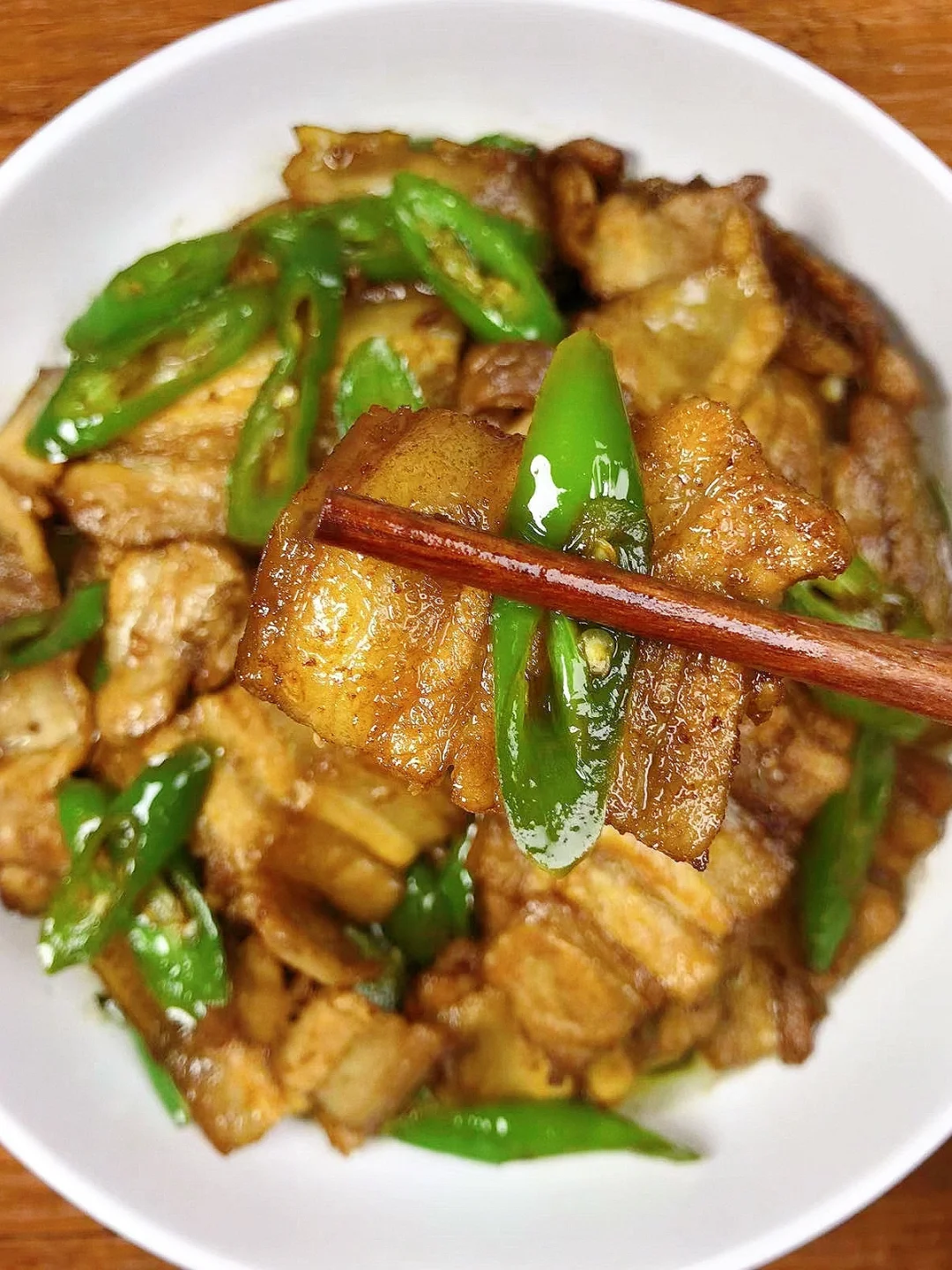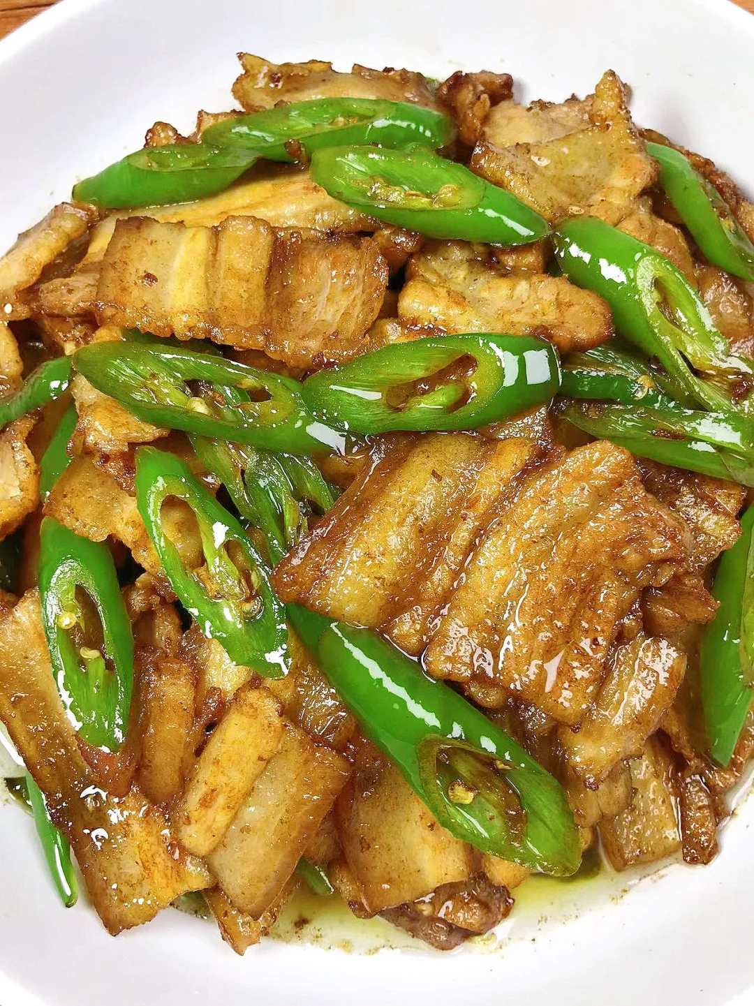 [赞R]今天分享一款辣椒炒肉!好吃下饭,做法简单!喜欢的赶紧试试吧! [赞R]食材:五花肉、辣椒、姜蒜 [赞R]做法: 1.五花肉切薄片;辣椒切段 2.油热(少油)放入五花肉煸炒至金黄,撇一边放入姜蒜炒香,倒入辣椒翻炒断生,加入生抽、老抽、蚝油翻炒片刻,最后放入少许鸡精炒匀即可