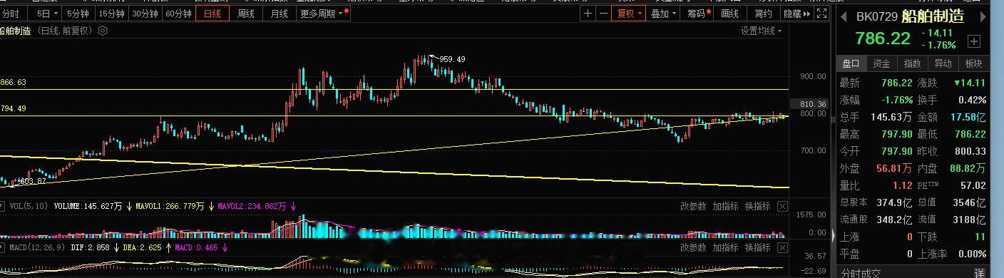 船舶这块很不争气,很好的东西走成这样,800点的关口每次走强依旧是机会,不慌#A
