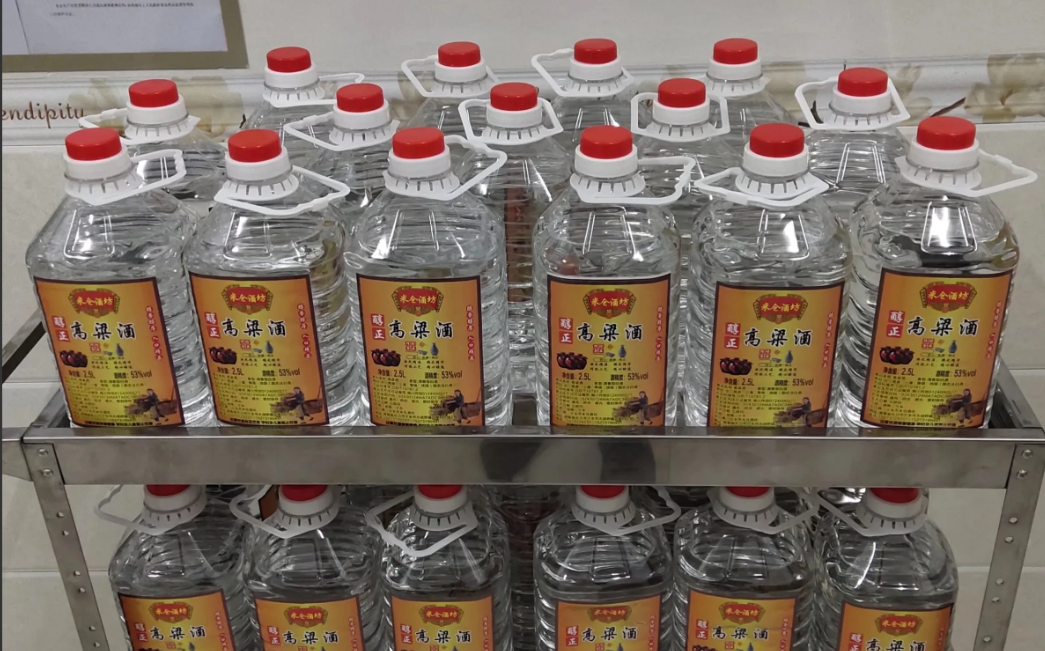 大家喝的53度高粱酒,是怎么来的?那就是在65度高粱酒的基础上,加水降度来的。往120斤65度高粱酒里面,加27斤蒸馏水,就得到了147斤53度高粱酒。