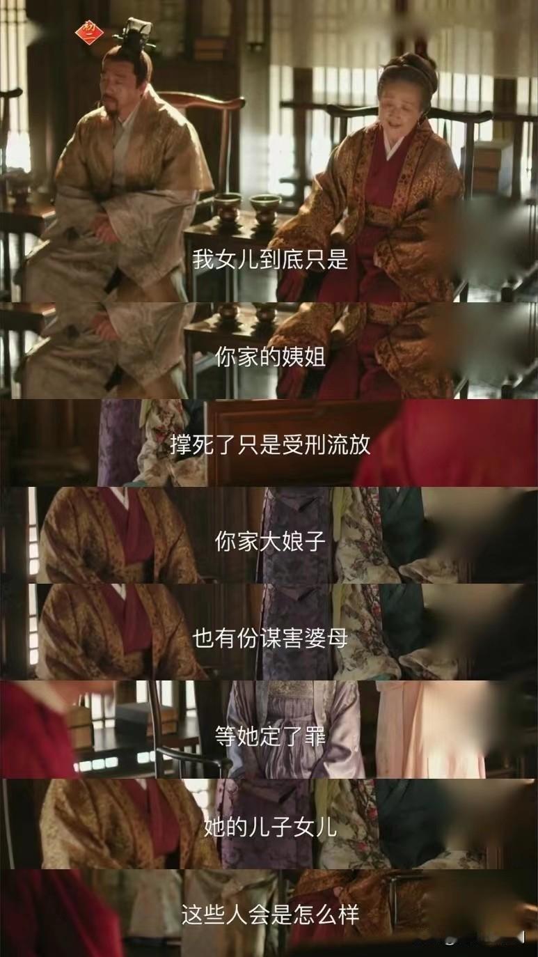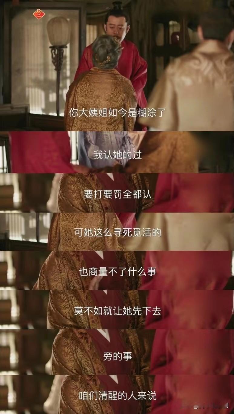 《知否》王老太太被明兰逼得极限二选一,却还能手段层出❗ 这场大戏终于来了❗️康姨妈哄骗王若弗下毒害盛老太太,盛康王三家审判名场面。 盛家这边全靠明兰一人撑着。 王老太太不愧是上一届宅斗冠军,被明兰逼得极限二选一了,还能耍手段扭转局面。 第①步:上来直接定王若弗的罪,丝毫不提康姨妈,就把这事丢到盛家内乱头上。还好盛纮被明兰提前打过预防针,没中招 第②步:明兰拿出一堆证据,王老太太又假意承认康姨妈所做的事,让康姨妈崩溃后,借口失心疯,要把人从盛家带回去。一旦带回去人去哪就由不得盛家和明兰了。 明兰再次出手,盛纮让其到盛家厢房歇着。 第③步:王老太太开始打亲情牌,跟盛纮说起当年如何看中他,提亲一口答应觉得他人好。好话恭维话说了一堆,把盛纮搞得要飘了,明兰赶紧打断,提醒盛纮盛老太太当初为了他,付出了多少养他长大。 王老太太的亲情牌打烂了。 第④步:不迂回了,王老太太直接撕破脸,说如果要处置康姨妈,那王若弗也没得活,连着长柏华兰的都遭殃。盛纮没想到老太太这么狠心,一时僵持住了。 还好最后长柏及时赶到,大义灭亲辞官威胁,镇住了场面,也顺带收拾了康姨母。 王老太太的纵容和溺爱,毁了她女儿的一生。 我是周十七@周十七聊剧,追好剧,聊感悟,点个关注,给生活添点乐趣[呲牙]