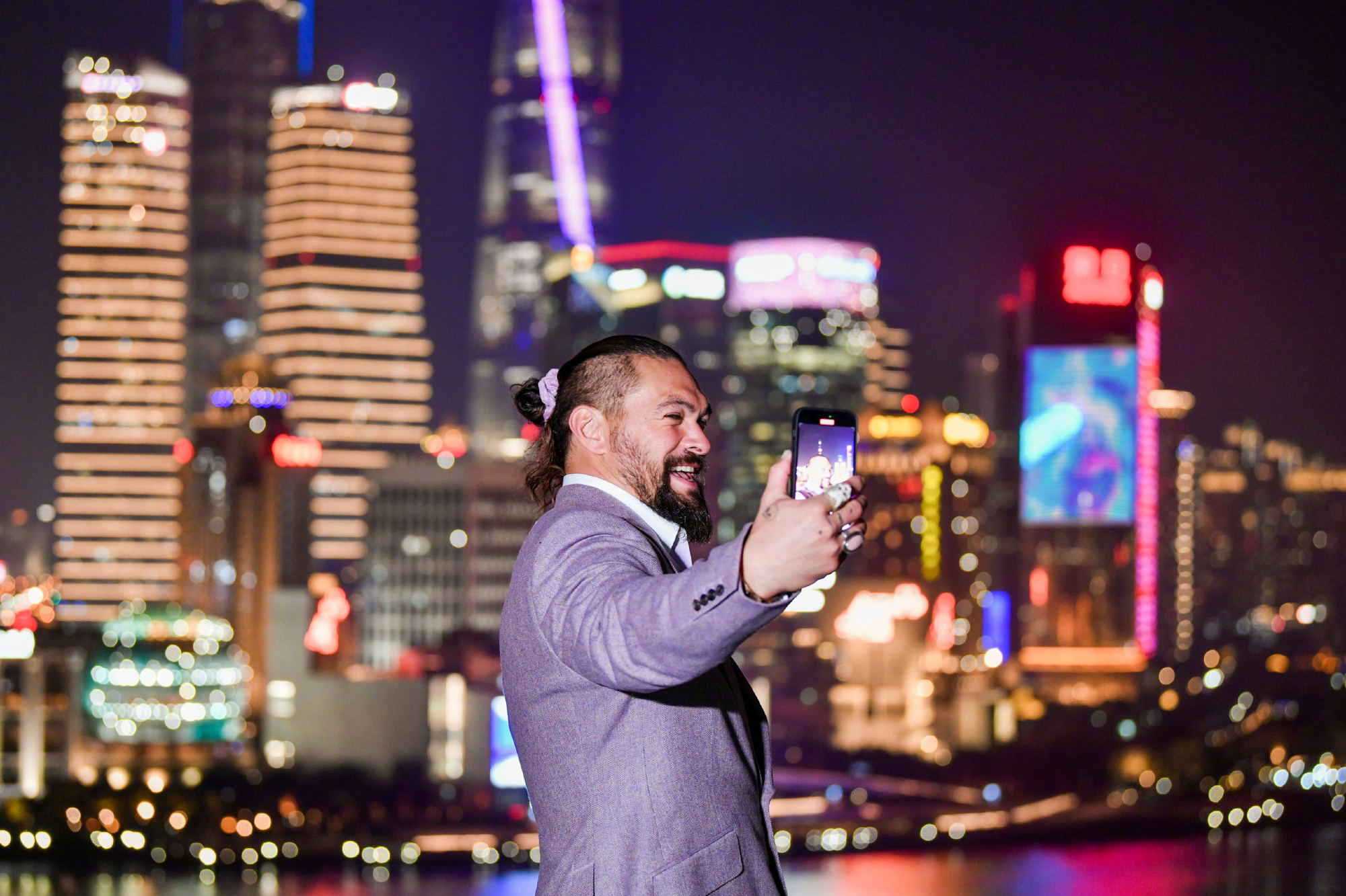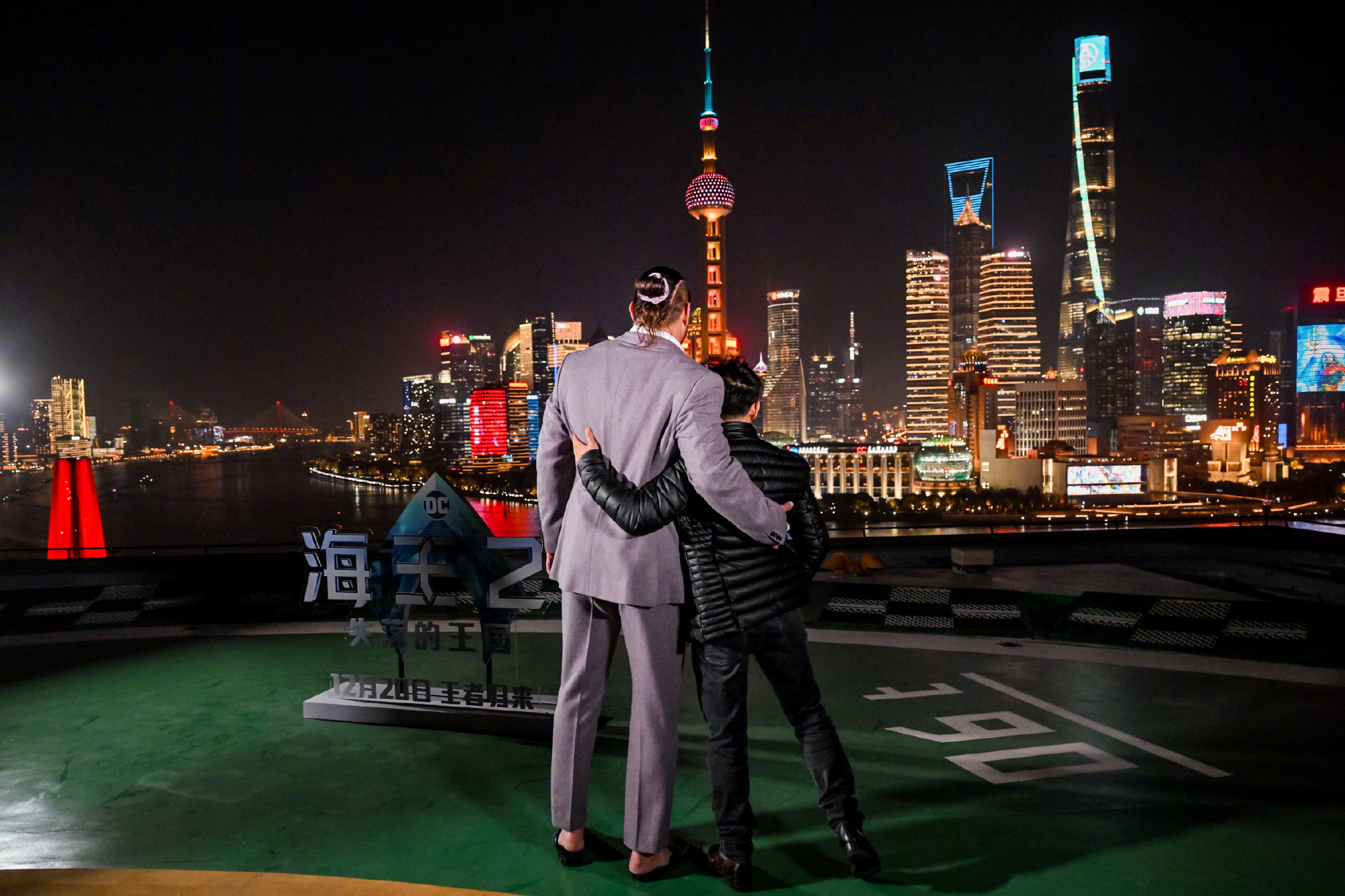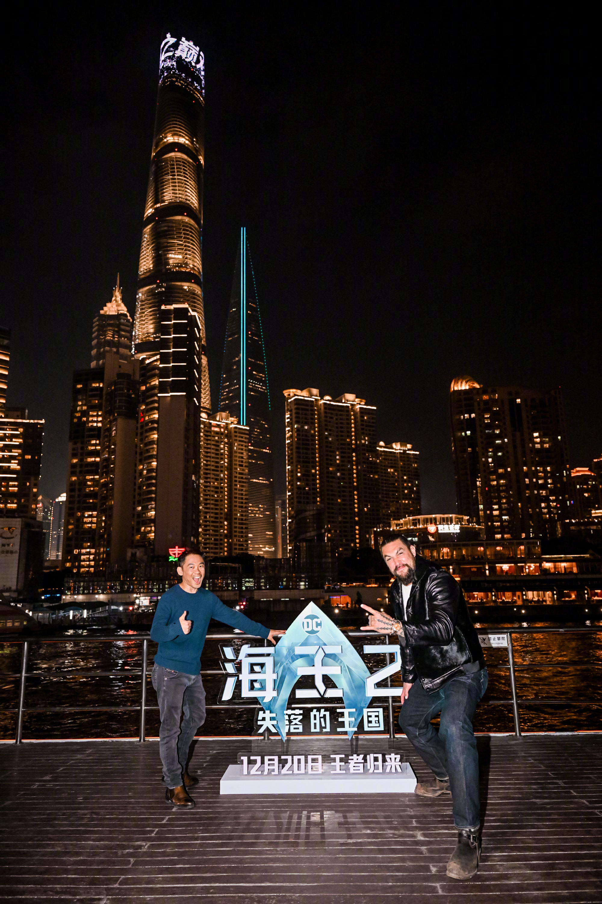 导演温子仁和“海王”杰森·莫玛参加《海王2:失落的王国》上海路演,夜游黄浦江!