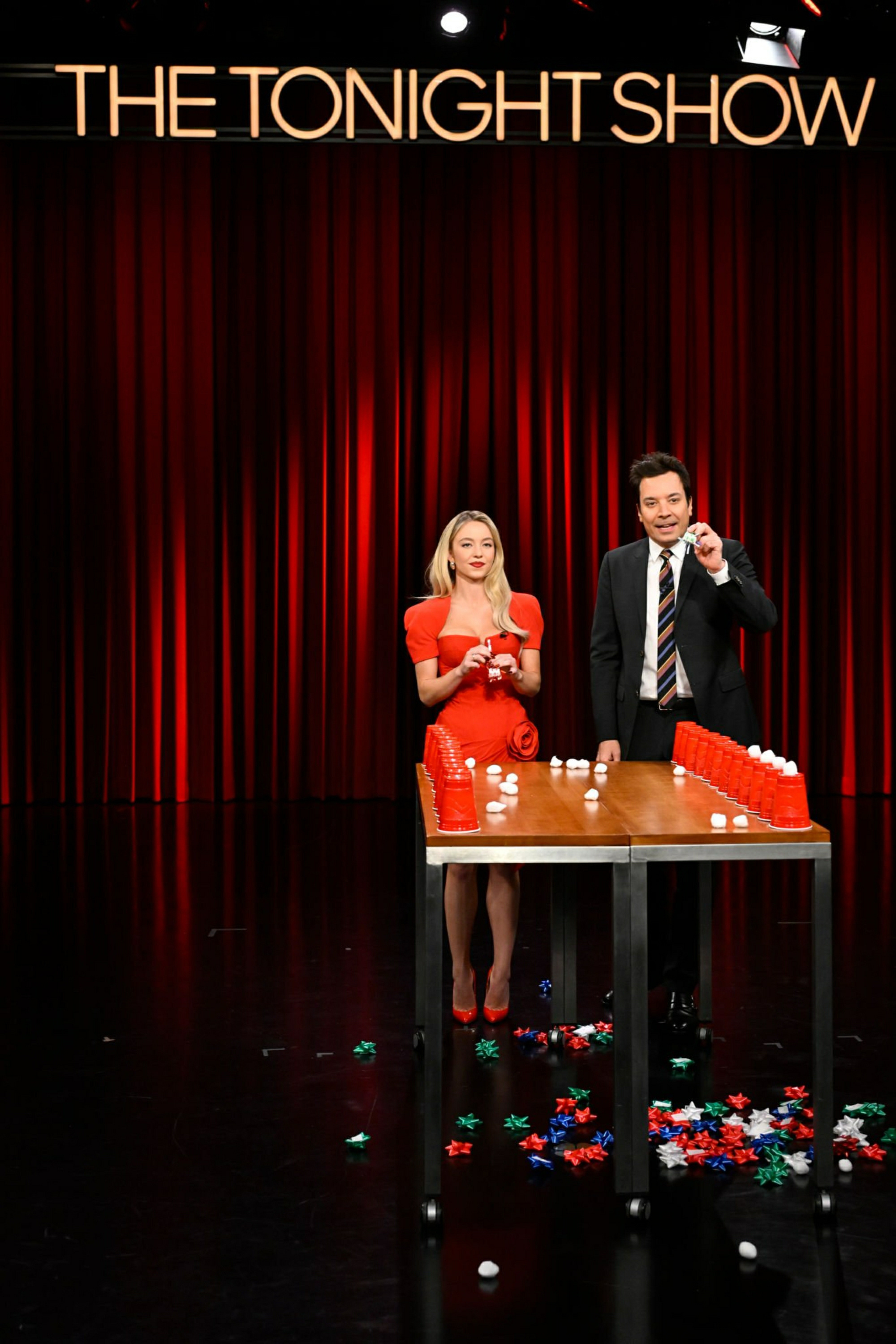 “悉尼妹”西德妮·斯威尼(Sydney Sweeney)做客肥伦今夜秀,宣传新电影《只想爱你》。