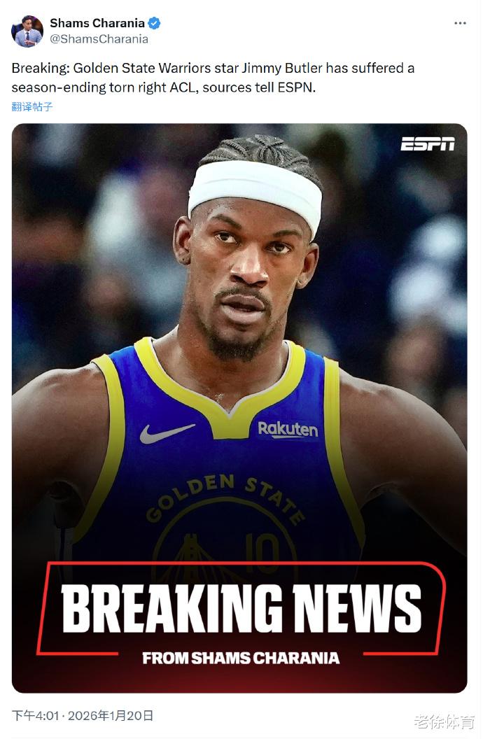 在主场对战老东家迈阿密热火的比赛中,巴特勒在第三节一次对抗中右膝重伤离场,而根据最新消息其伤情已被确诊为右膝前十字韧带撕裂,宣布赛季报销