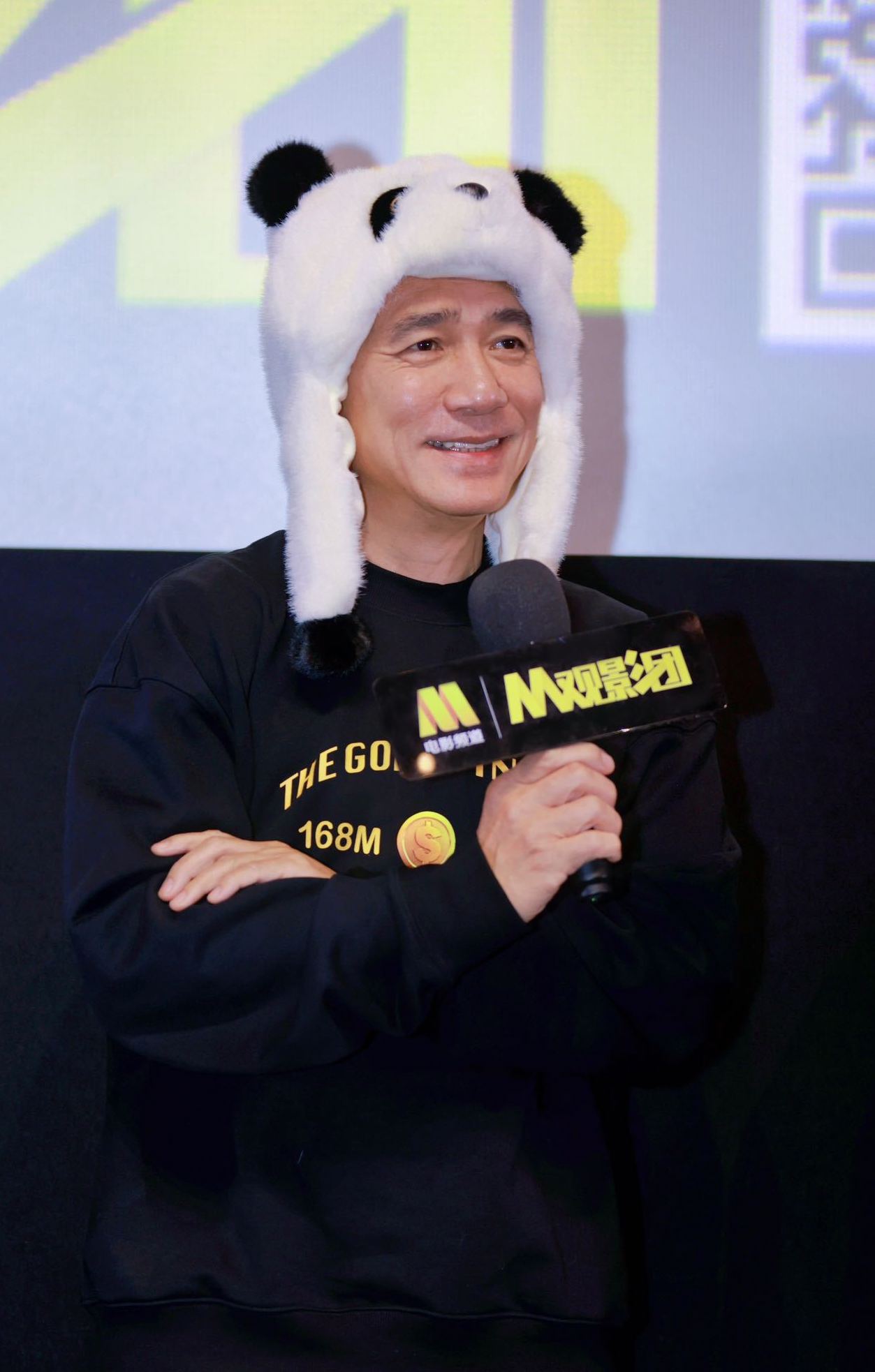 梁朝伟戴熊猫帽也太可爱了 刘德华、梁朝伟、阿sa、任达华等主演的《金手指》于今日正式上映。 在昨日的路演活动中,梁朝伟戴上了影迷送的熊猫帽,引发网络热议,很是可爱!