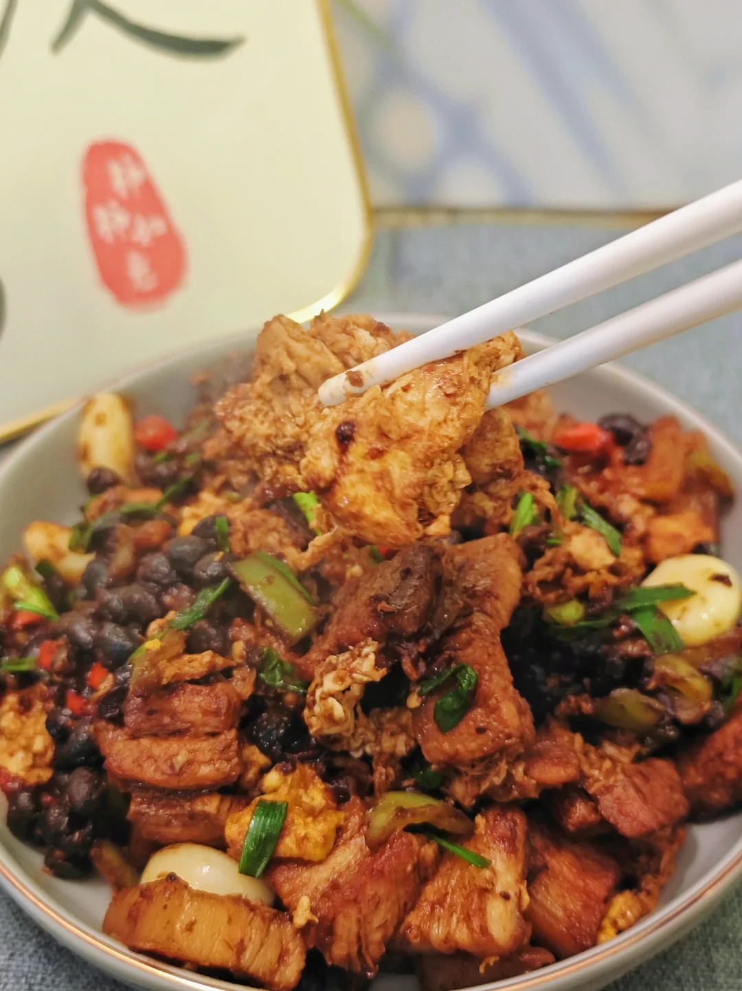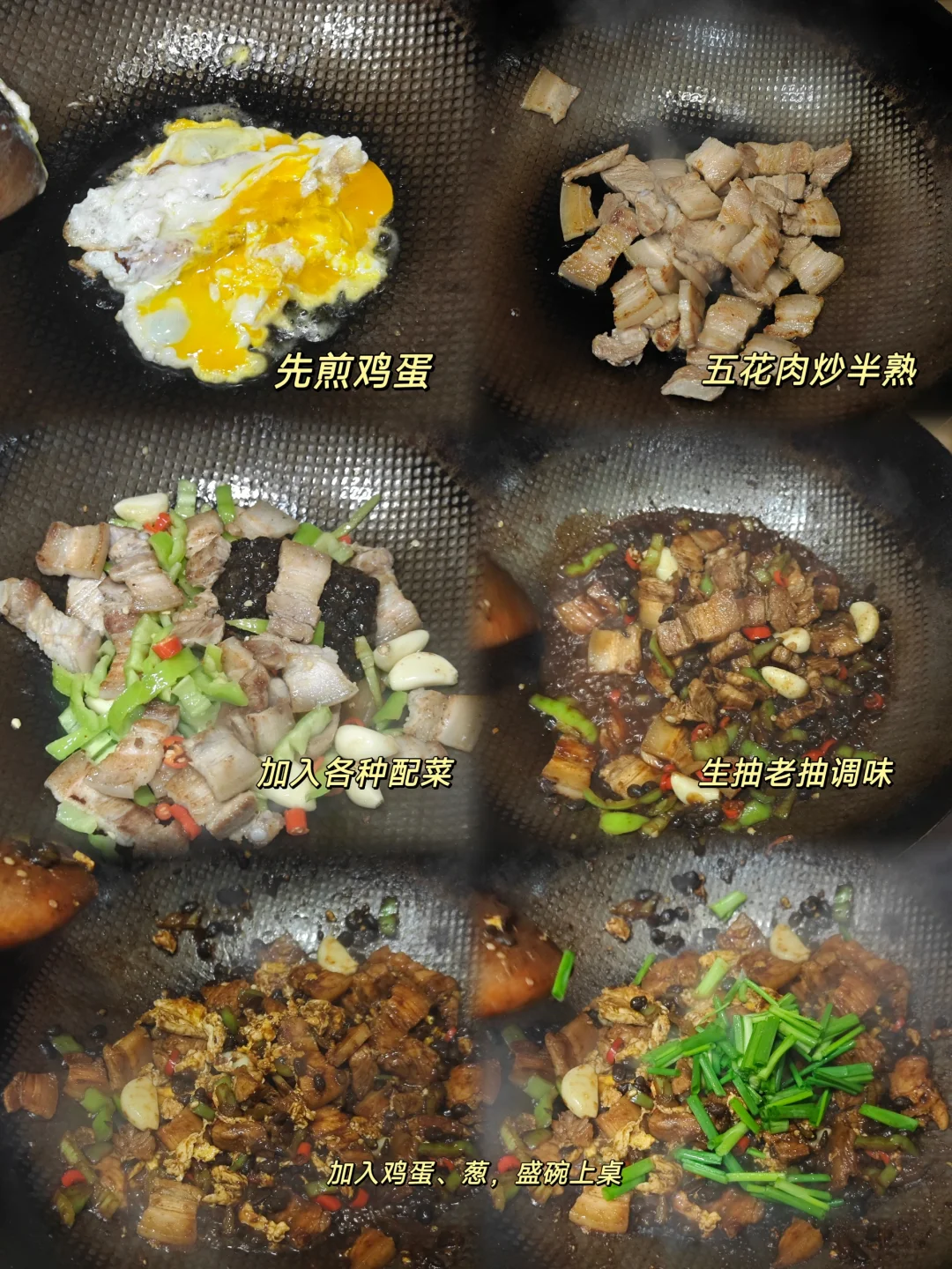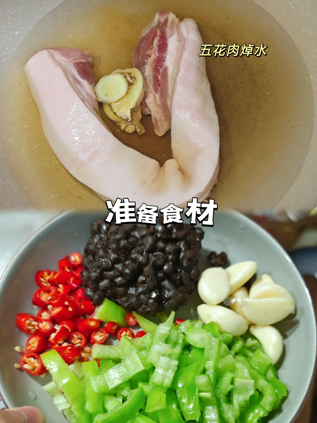 五花肉 鸡蛋 青红椒 豆豉 葱蒜