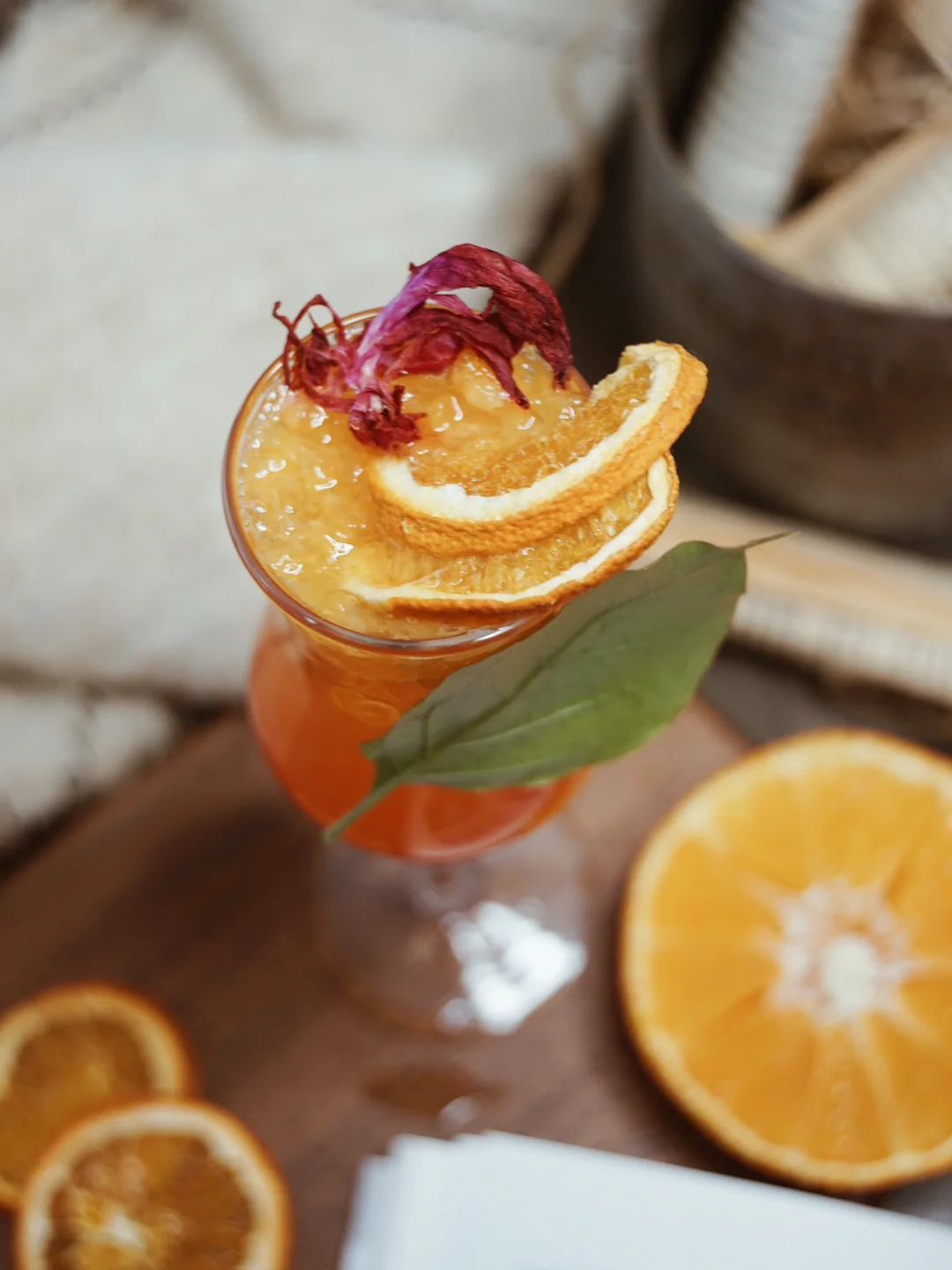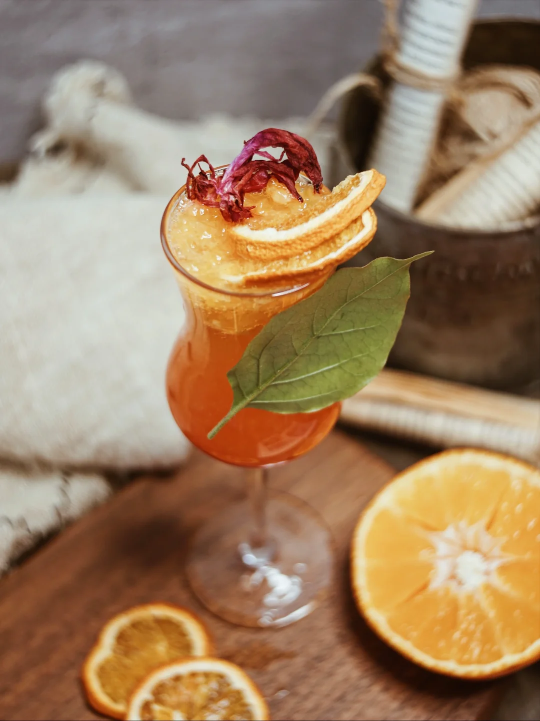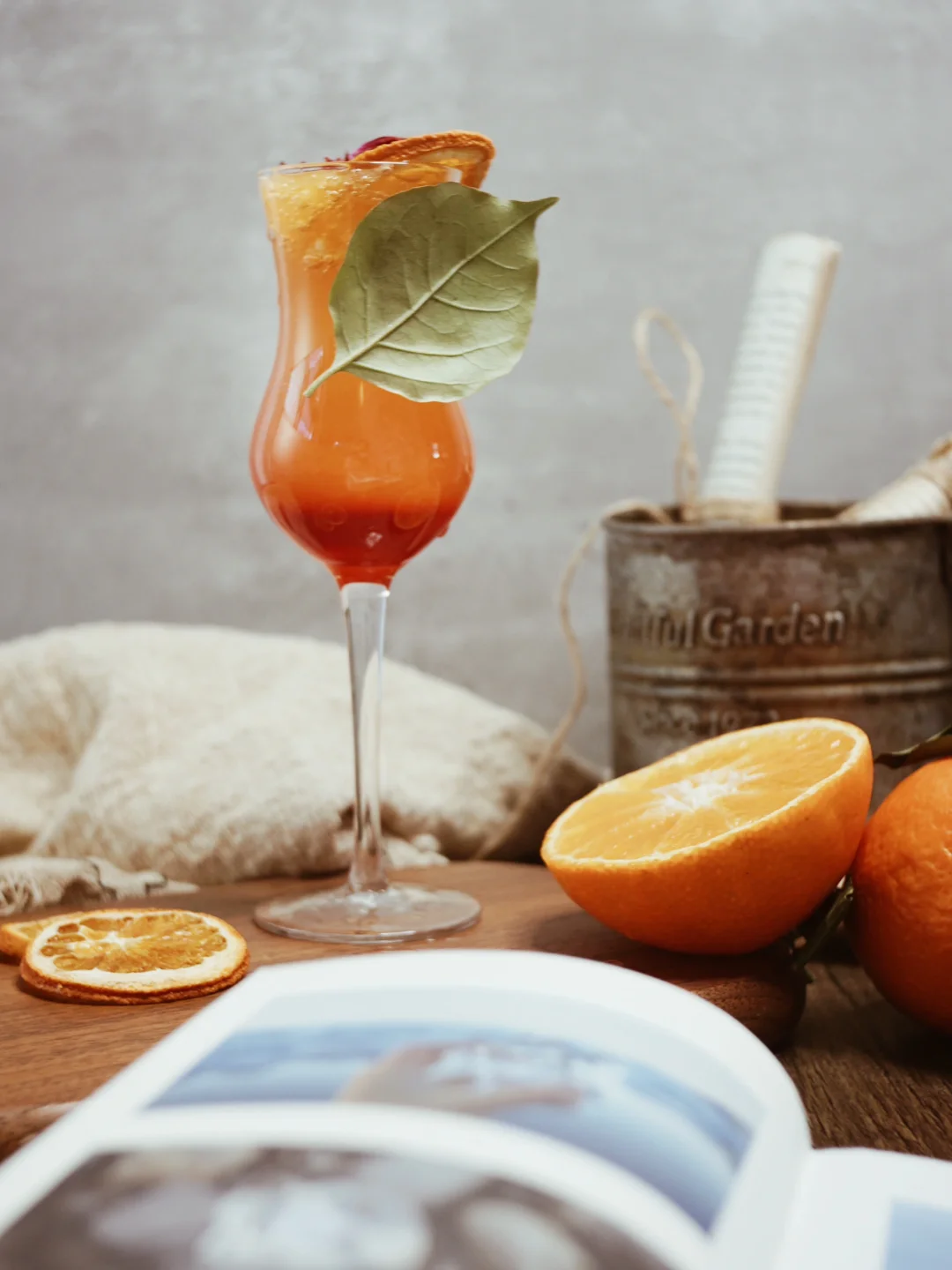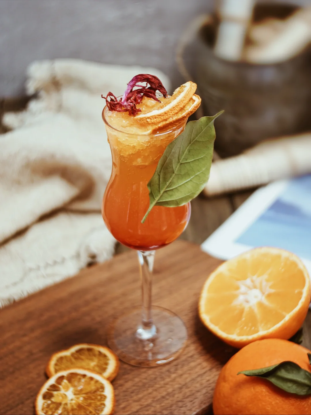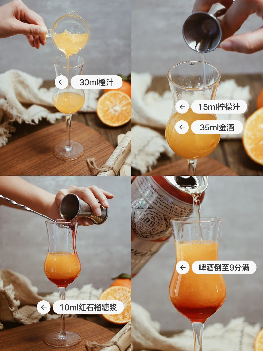 今晚喝酒 我的快乐,还是在摄入酒精后的moment 不挑酒,可以是现成的威士忌,啤酒,葡萄酒。 也可以是我即兴调的鸡尾酒 没有特定公式,所以这杯也没有起名字。只是根据它们各自的风味特点进行搭配。出奇的好喝 · 🥂 杯中依次倒入橙汁、柠檬汁、金酒,用吧勺搅拌均匀 红石榴糖浆沿吧勺缓慢倒入,啤酒倒至9分满 用鲜花、绿叶、干橙片装饰 🥂 有一点点度数,有轻微花香、果味酸甜浓郁。有点像气泡酒的样子