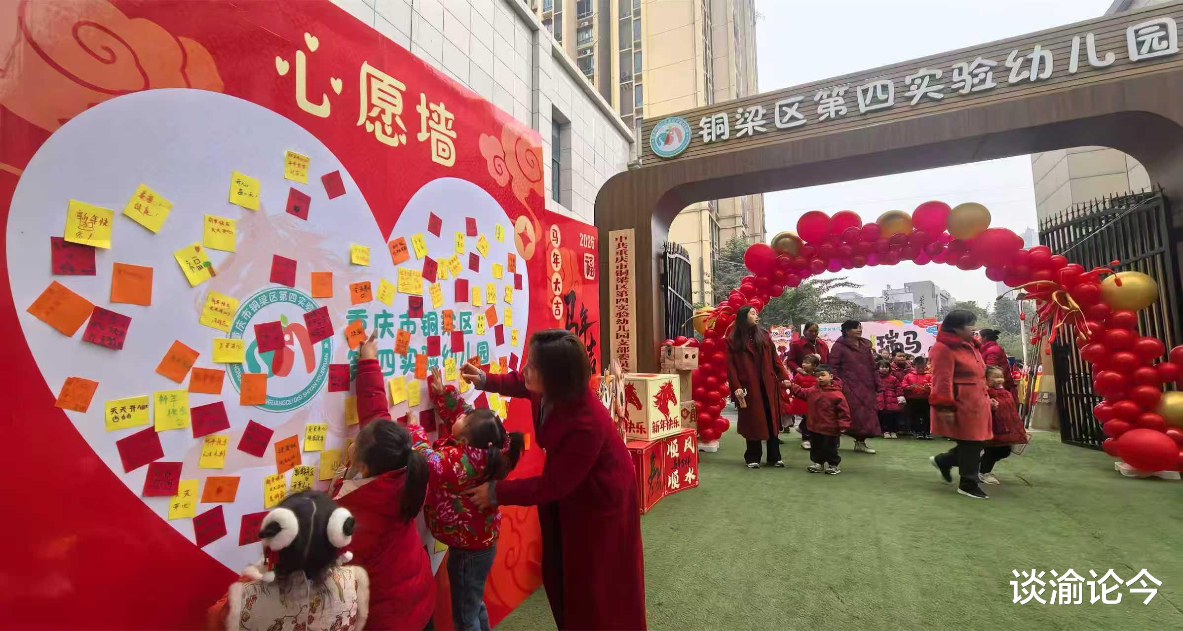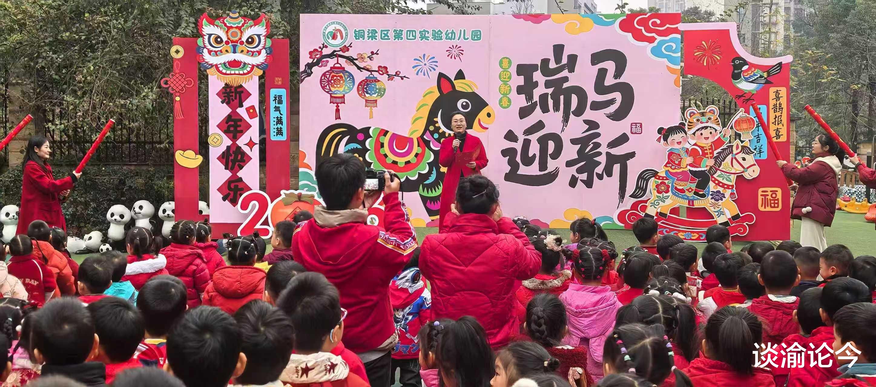 “一元复始,万象更新。在这辞旧迎新之际,我们将迎来充满活力与希望的马年。铜梁区四幼将继续秉承‘让童年回归大地,让教育回归自然’的教育理念,为孩子们创造更多丰富多彩的活动,陪伴他们健康快乐成长。”铜梁区第四实验幼儿园园长、铜梁学前教育名师工作室主持人唐娟表示。(赵武强)