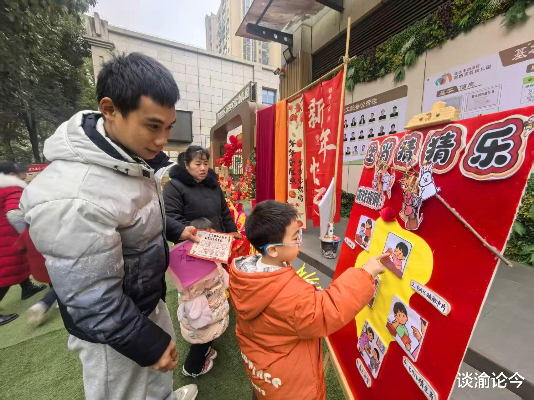 12月30日上午,重庆铜梁区第四实验幼儿园里张灯结彩、乐声悠扬,在欢乐喜庆的氛围中,一场以“龙马精神启新岁,小马闯关乐开怀”为主题的元旦亲子游园大戏,迎接元旦节的到来。