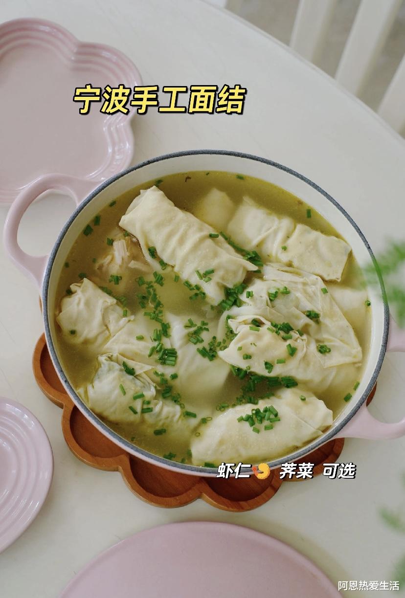 小技巧:宁波人煮面结汤,猪油是灵魂!放一小块猪油,汤的香味直接翻倍,比放任何调料都香。面结要先下锅煮,这样肉馅的鲜味儿能煮进汤里,汤才会更浓郁。