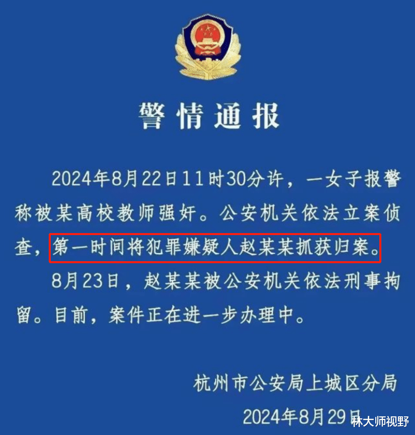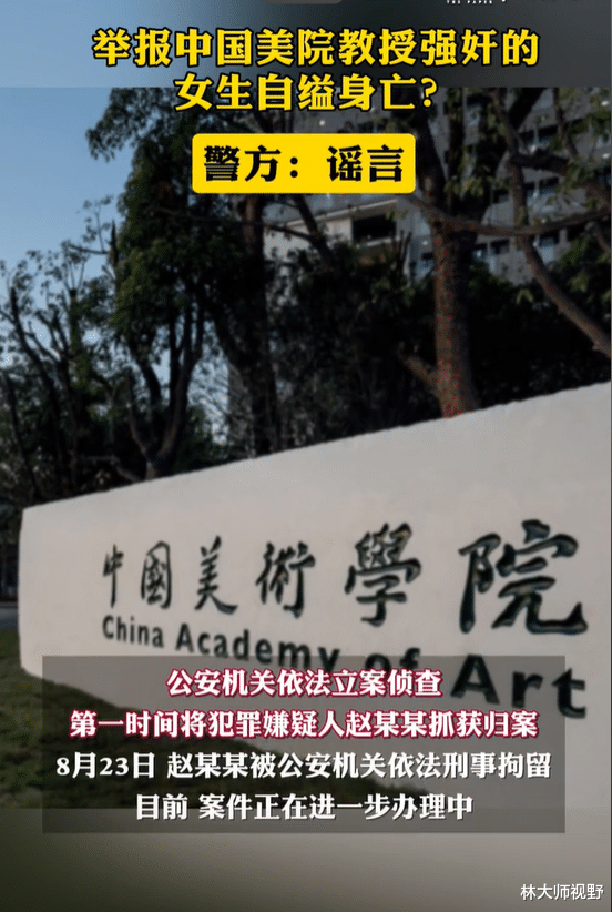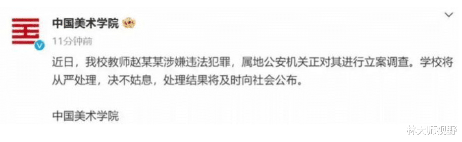 中国美术学院终于出来做出了回应。他们表示,教师赵某某涉嫌违法犯罪,学校将从严处理,绝不姑息。