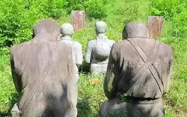 但墓园里有个角落,去过的中国人看了解气,日本人看了扎心——四个日本军官的雕像,直挺挺地跪在烈士墓前,低着头,像在谢罪。旁边还竖了块碑,写着"倭冢"俩字。