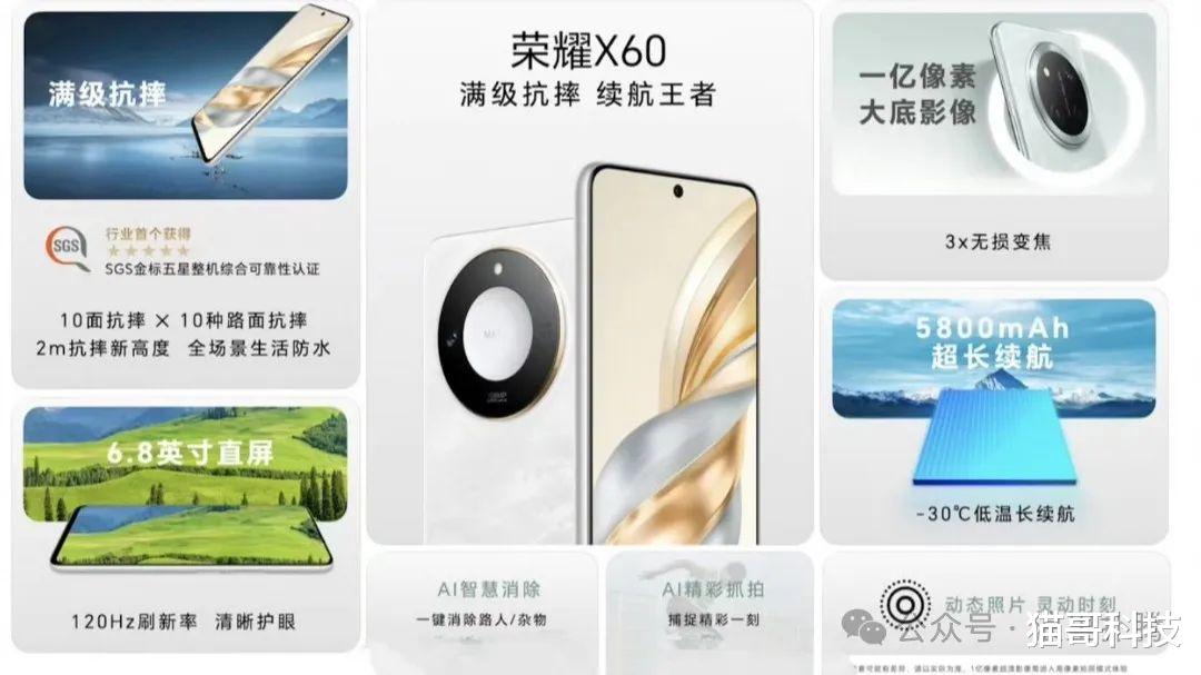 回顾上一代的荣耀X50系列,其惊人的市场表现相当出乎意料。推出至今,荣耀X50系列的销量已经超过1500万台。根据荣耀官方的算法,荣耀X50系列平均每2.7秒卖出一台,累计叠加高度超过13座珠穆朗玛峰了。 有一说一,一个系列的机型能够在生命周期内达成千万级别以上的销量,绝对是非常罕见的,荣耀真的是赢麻了。那么,全新的荣耀X60系列又有哪些升级的地方呢?
