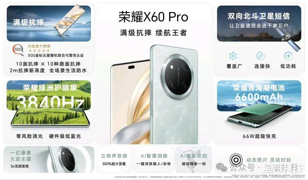 核心硬件上,荣耀X60 Pro采用了骁龙6 Gen1处理器,性能我就不说了,日常聊聊微信、看看短视频啥的就行,打游戏应该够呛。这边Pro机型拥有一块6600mAh的超大容量电池,支持66W有线快充,后置相机主摄还是108MP像素的HM6镜头。虽说荣耀X60 Pro是双扬声器,但是它也没有NFC和红外遥控,惊喜吧。另外,荣耀X60 Pro的12+512版本支持北斗卫星通信。我觉得这个功能给中低端机型,纯属是为了提价来的。