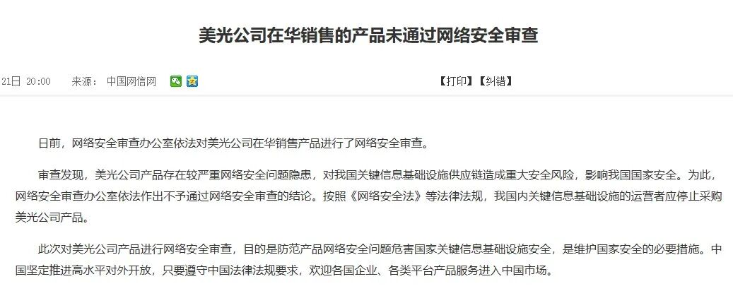 第三刀:2023年5月,中国网信办宣布美光产品未通过网络安全审查,禁止关键基础设施运营者采购。当时美光大约全球25%的营收来自中国,这一纸禁令致使美光至少一半的营收收到致命一击,使其在消费级市场的渠道信心崩盘,也是其放弃中国消费级存储市场的决定性时刻。