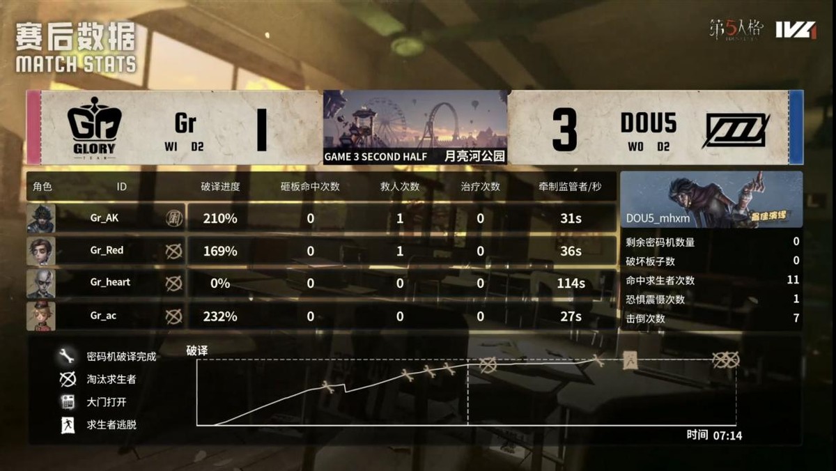 最终,Gr以1胜2平0负(14:11)的比分击败DOU5,获得本场比赛的胜利。