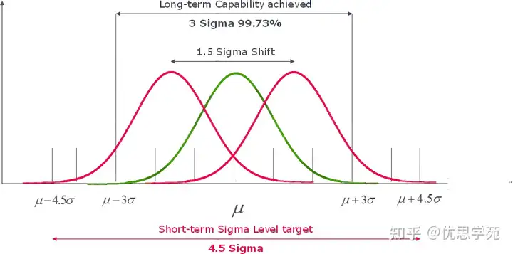 现在,将这两个概念结合起来:想象一下,这个“合格”的流程,在被我们的图表检测到之前,悄无声息地发生了1.5西格玛的偏移。由于它最初只有1个西格玛的缓冲空间,1.5西格玛的偏移意味着其分布的尾部现在已经远远超出了规格界限。