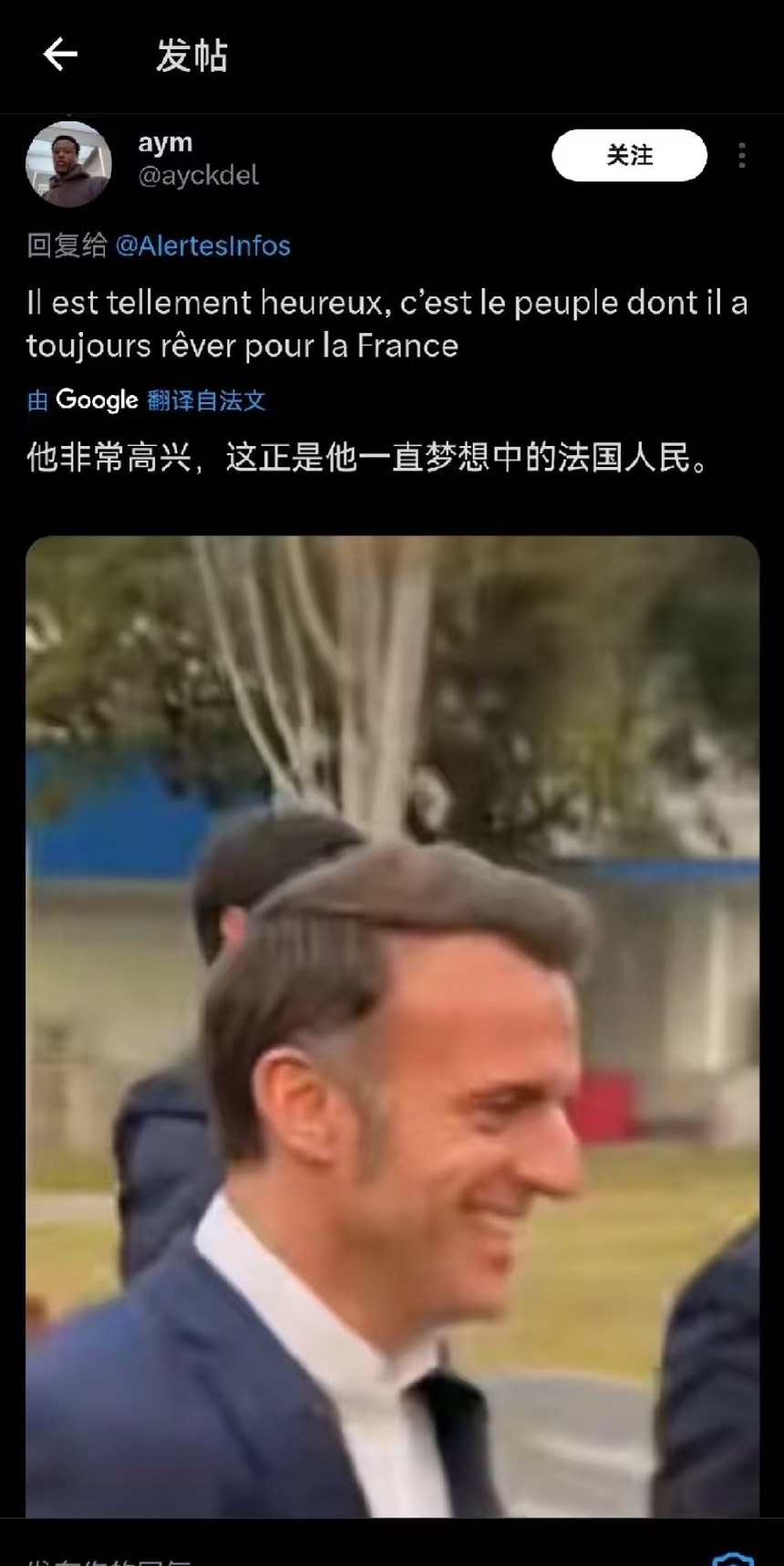 法国本土网友也加入讨论,有人在社交媒体上写道:“法国网友说他这辈子没体验过当歌星,终于体验到了,别回来了。”