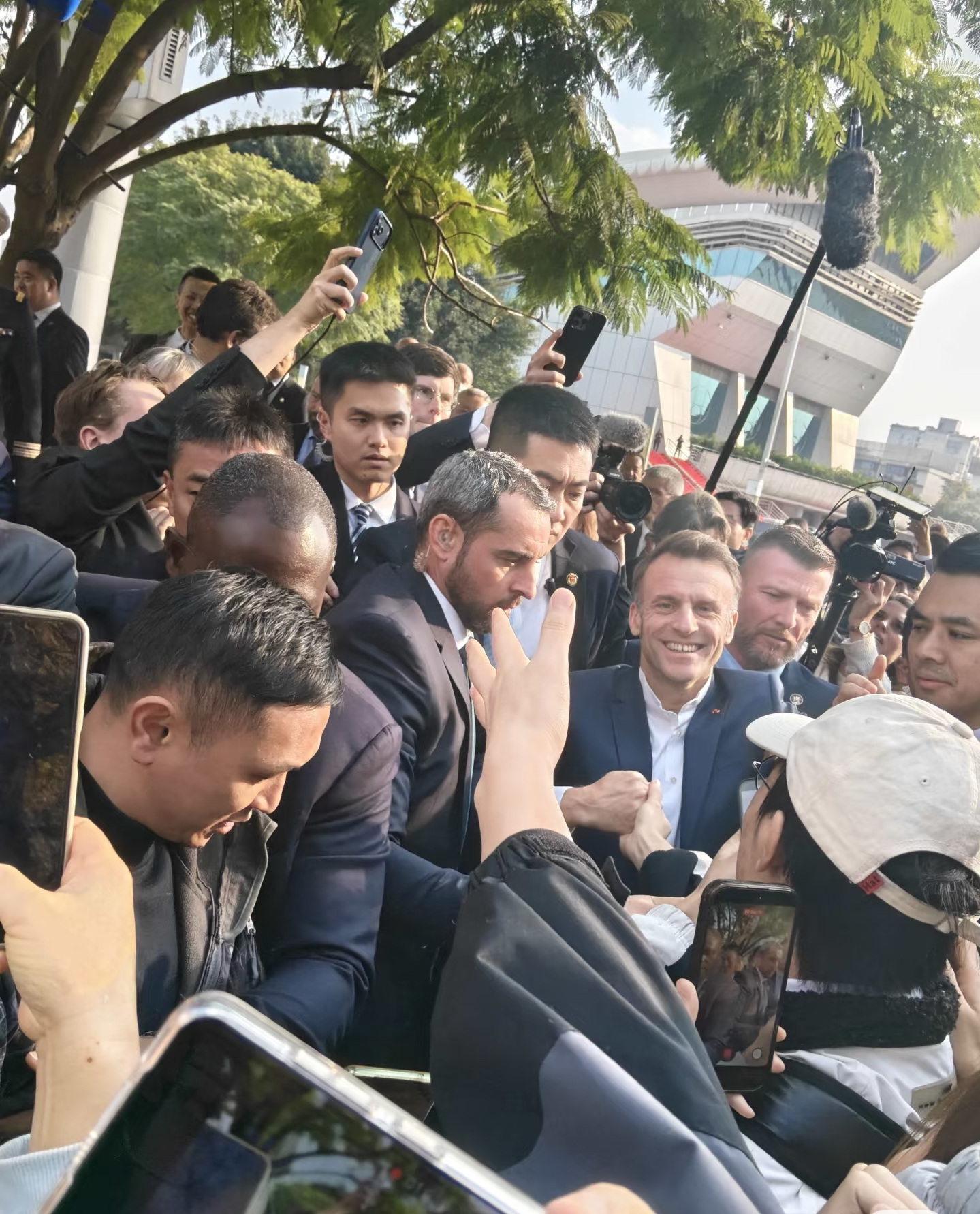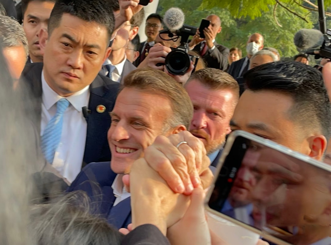 现场视频里,这位法国领导人毫不掩饰自己的开心,不断向欢呼的学生挥手致意,还几次特意快步走向人群,完全不像一位正在进行国事访问的国家元首。