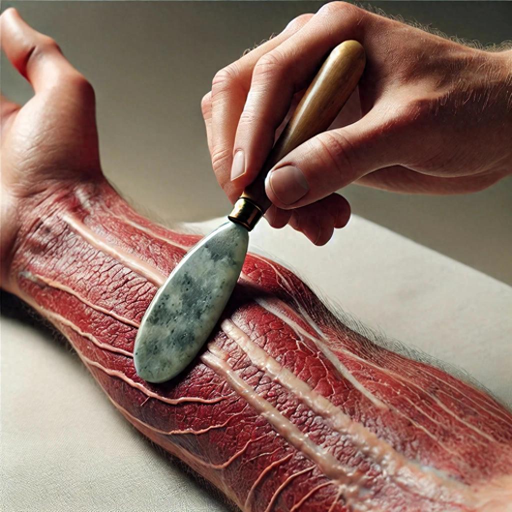 刮痧不是比谁更能忍、颜色更深就更好。你看到的“痧”,本质上更像皮下毛细血管扩张、轻微渗出造成的印子,有点类似“可控的浅表瘀痕”。它跟“体内湿气多少”并不能一一对应。对上班族来说,更多时候你想改善的,是久坐导致的循环变慢、肌肉紧绷、出汗少、活动少带来的“沉、胀、困”。这类不适,适度的皮肤刺激和肌肉放松,确实可能让体感变轻,但它靠的不是“刮出血、刮到黑”,而是“刺激到位、不过度”。