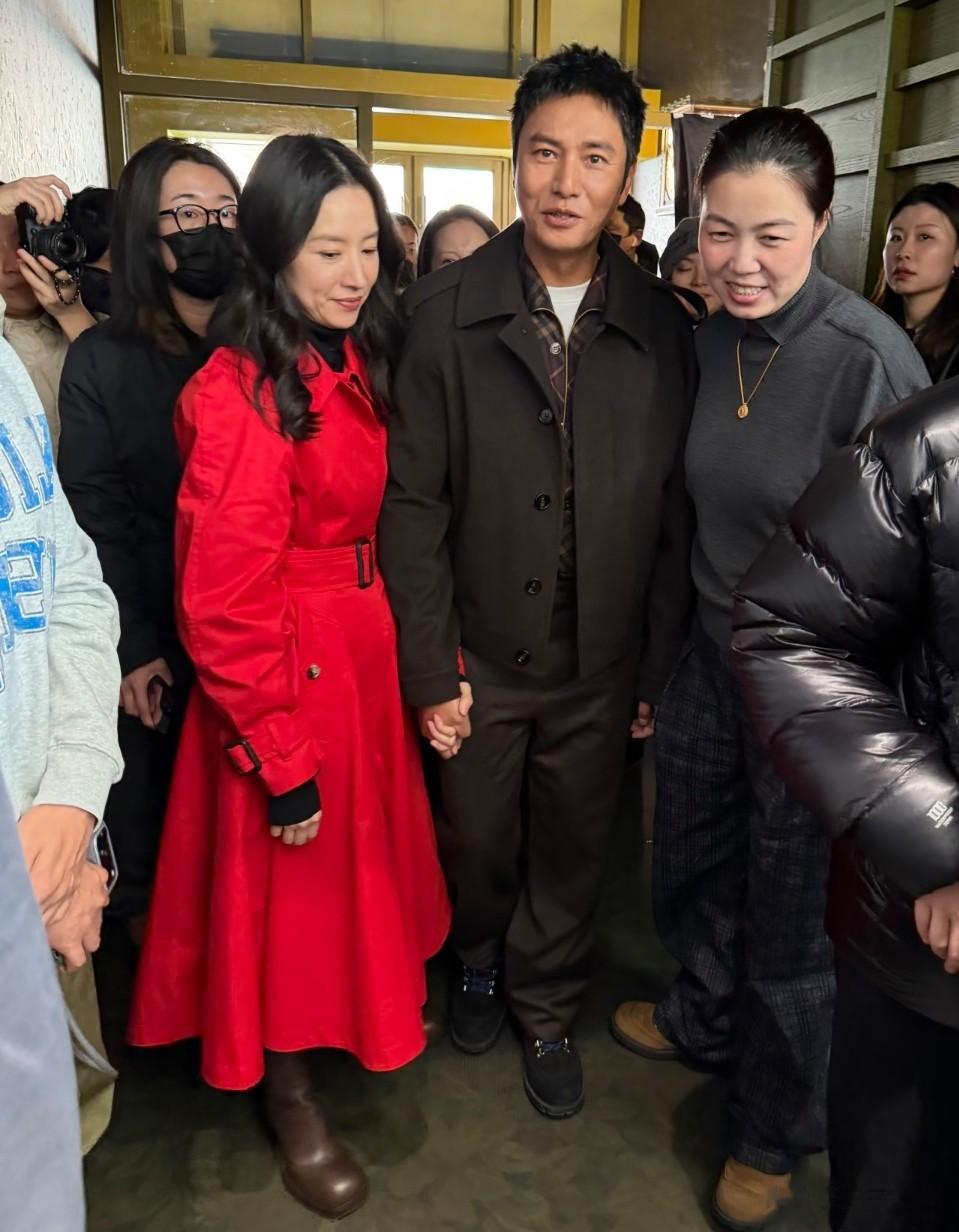 俩人手拉着手一起面对眼前的摄像机,毫不避讳大众的看法,不少网友表示乍一看还以为俩人结婚了,手拉着手一起招待宾客,俩人脸上都有些羞涩感,尤其是董洁侧身地姿态,像极了“小媳妇”看起来有些娇羞。