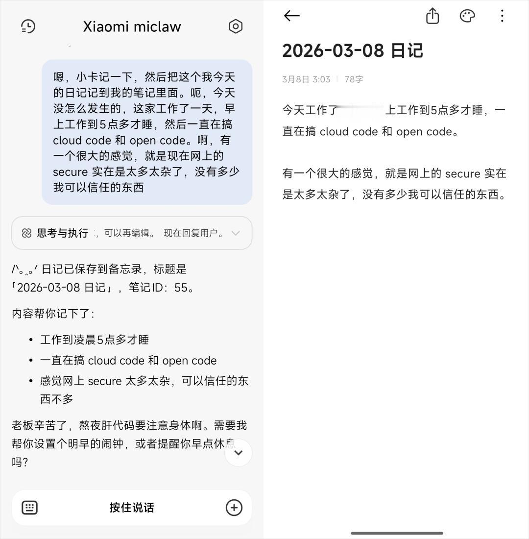 你相信我,这就像siri和OpenClaw的区别,能用新时代的东西,还是用新的,真的,比小爱丝滑太多了。