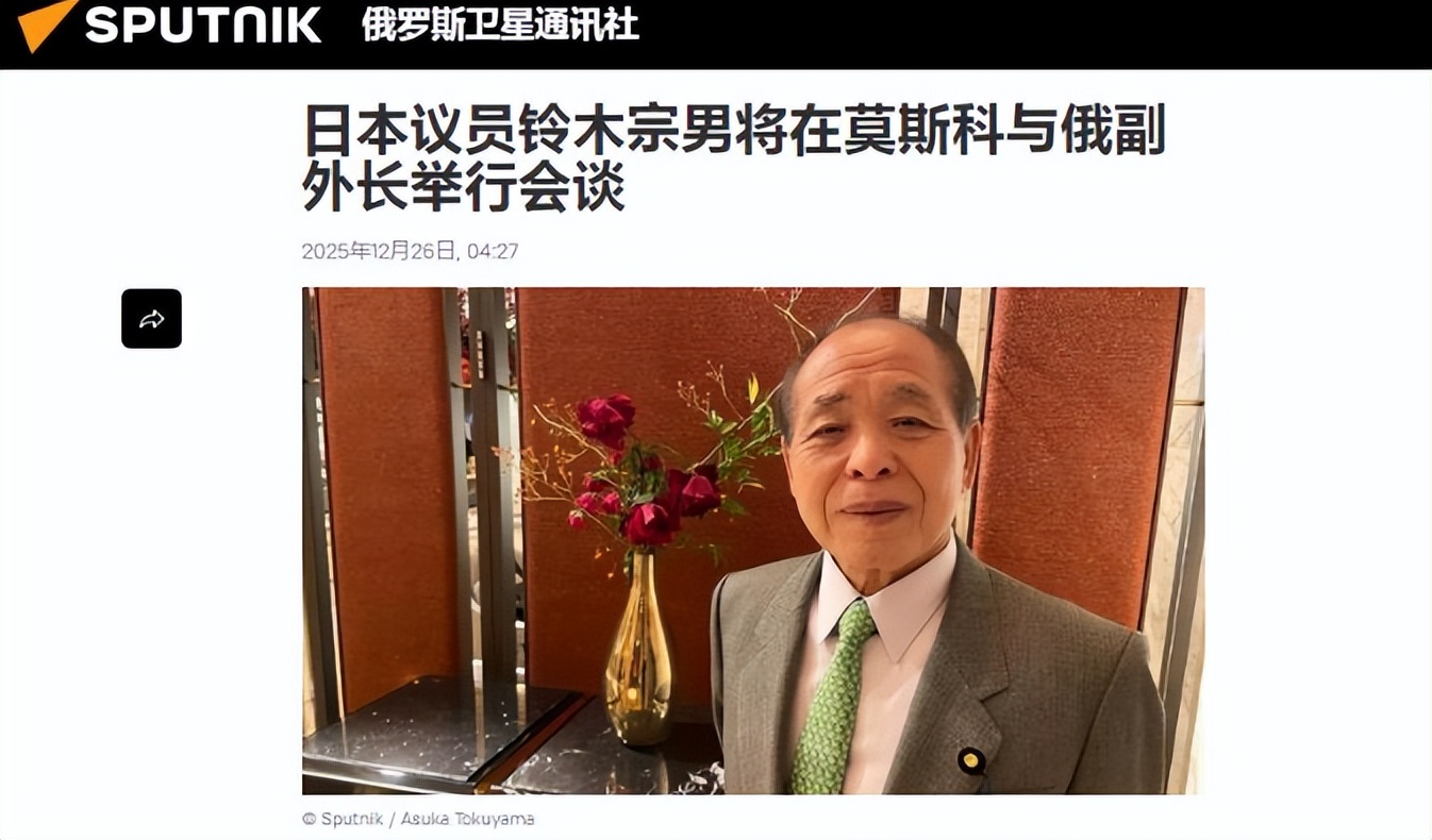 抱美国大腿没指望,高市早苗和日本右翼就把主意打到了俄罗斯身上。12 月 25 日,自民党议员铃木宗男专程赴俄,要和俄罗斯外交部副部长会面,表面上谈的是拜谒陵墓和捕鱼谈判,实则是想在捕鱼问题上给俄罗斯送 “大礼”,缓和一直紧张的俄日关系。他们打的如意算盘是,只要俄日关系回暖,中俄之前针对日本的战略协作就会泡汤,日本就能摆脱南北两面承压的困境。