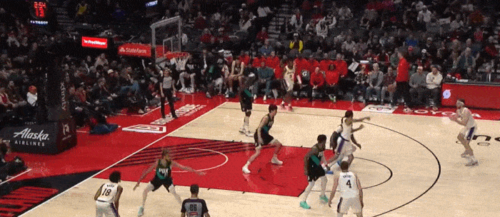 这个回合其实还挺能体现蒂米的速度 半转换进攻 蒂米先跑到了底角 出手空位三分