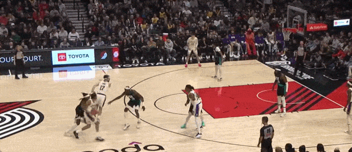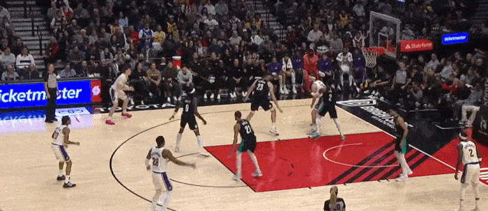 挡拆后的下顺 通常艾顿会在这个位置接球 但是他也能在这个短顺下的位置进行抛投