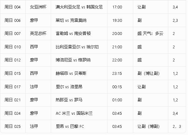 周日024 意甲 AC米兰 vs 国际米兰 03:45