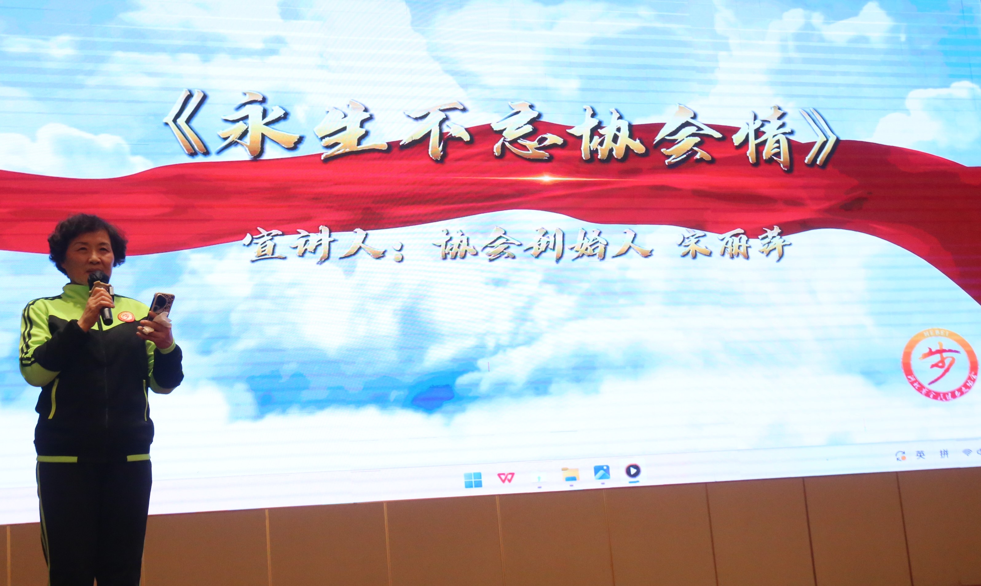 协会秘书长仇广信教授上台送上新年祝福,他在发言中回顾过往,展望未来,勉励所有家人继续携手,在健步的道路上走出健康,走出快乐,走出更美的夕阳红。