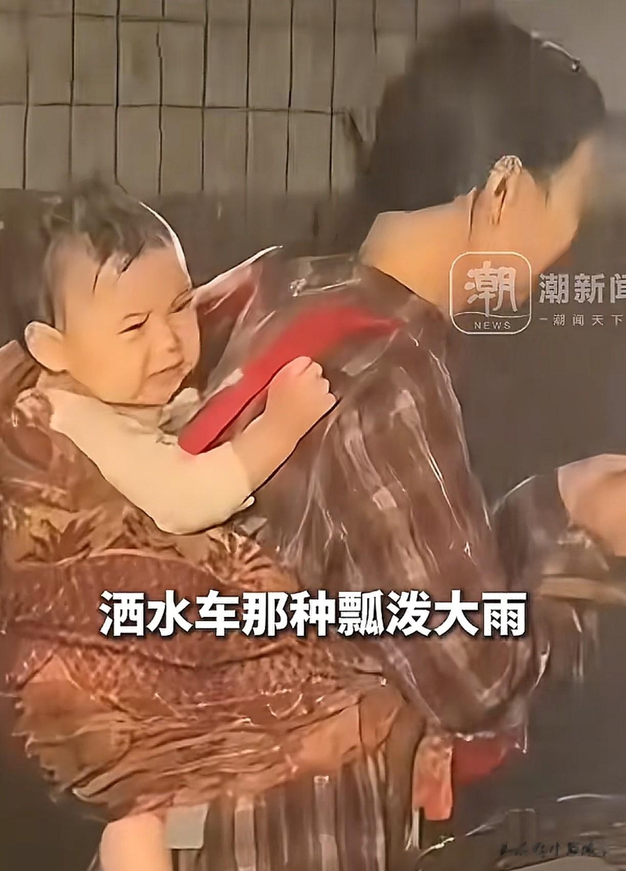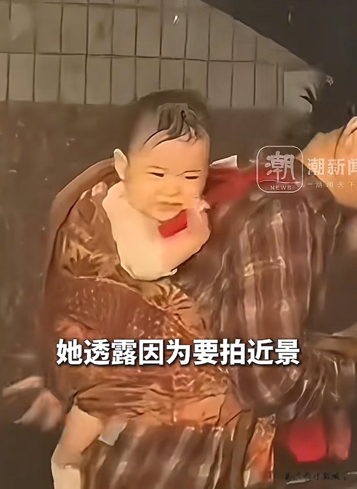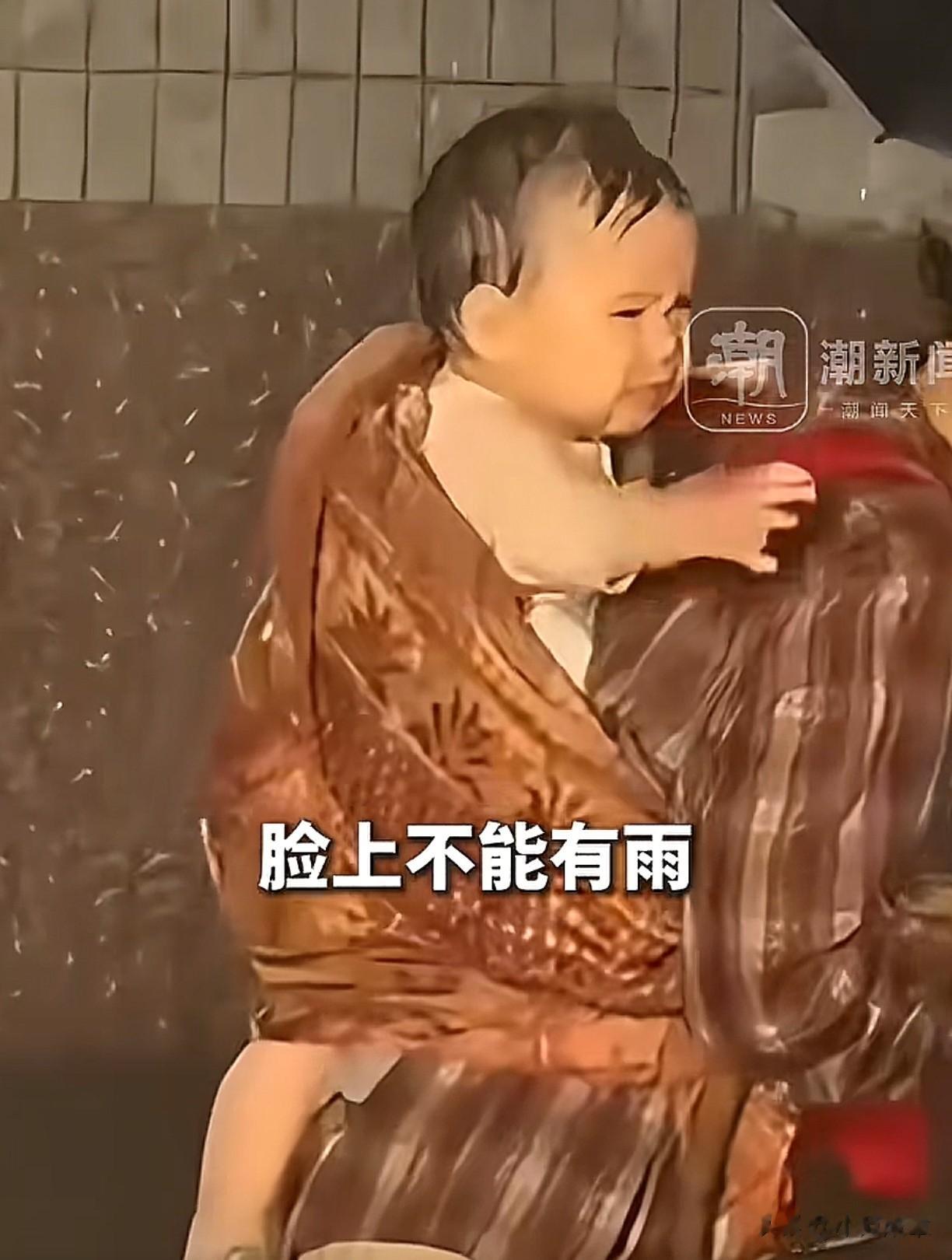 因为剧情的需要,两人的面部不能淋雨,一淋雨又得重拍,如果重拍,那孩子就得一直淋雨。