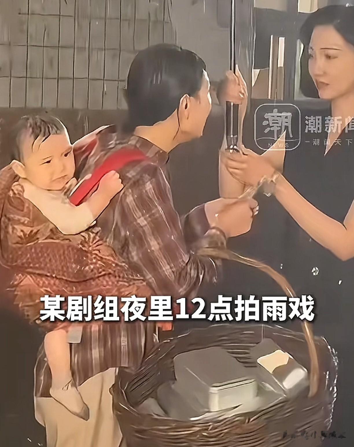 可是孩子细皮嫩肉的,在深夜拍雨戏让人心疼,虽然这雨是人工制造的雨,但是也很容易受凉。