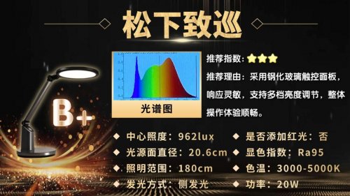 儿童台灯哪个品牌更护眼更好?松下致巡整体而言是一款符合国AA级标准的护眼台灯,同时它采用了154颗侧发光灯珠搭配导光板,使光线向下发散,可以有效避免光源直射带来的刺眼感。在核心护眼层面,因为采用的是蓝光激发的全光谱,所以存在明显的蓝光高峰,连续性一般且蓝光峰值比较高,且没有红光增益。整体的护眼效果并不是百元款中的最佳选择。
