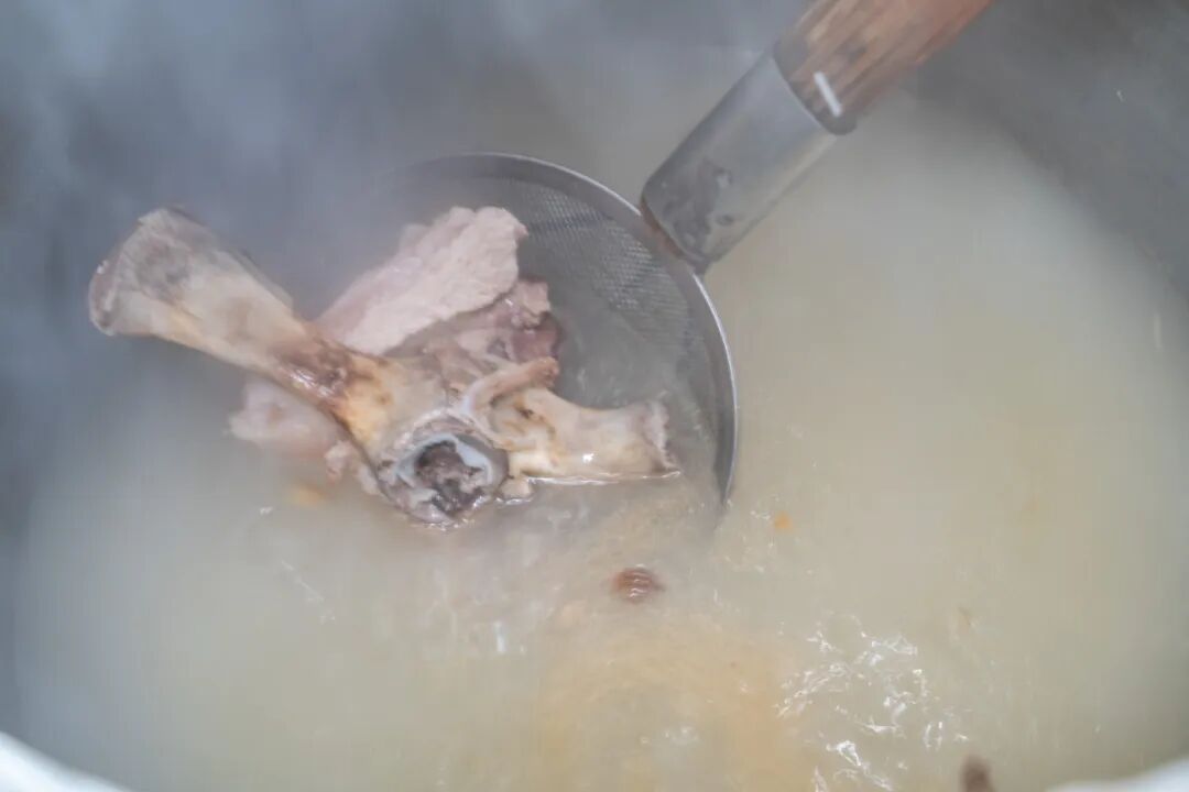 一口能让人吃好几年的米线,精髓在于汤底。一碗看似平淡无奇的白色汤汁,其实是用筒子骨、扇子骨、整鸡熬煮几个小时才成的。