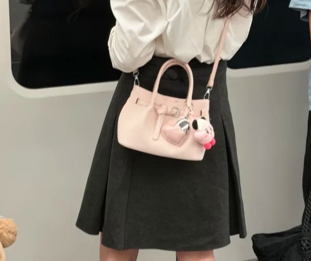 比如穿一套燕麦色的针织衫配同色系长裤,手提一只比衣服深两个色号的焦糖色包包,视觉上既有连贯性,又有自然的过渡。或者用一只灰粉色的小包,去搭配玫粉色的内搭——同色系但不同饱和度,会产生一种“刻意经营却毫不费力”的效果。这种配色逻辑不需要繁复的叠穿,一只包就足够完成风格的表达。