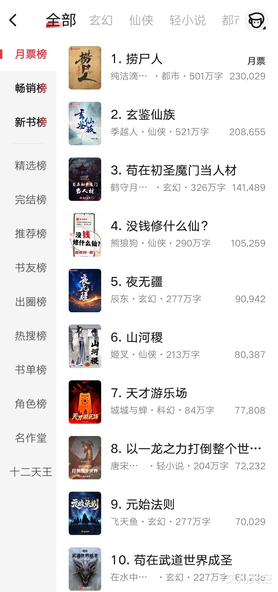 误道者的《天人图谱》、红烧油焖虾的仙子成真被挤出去了。