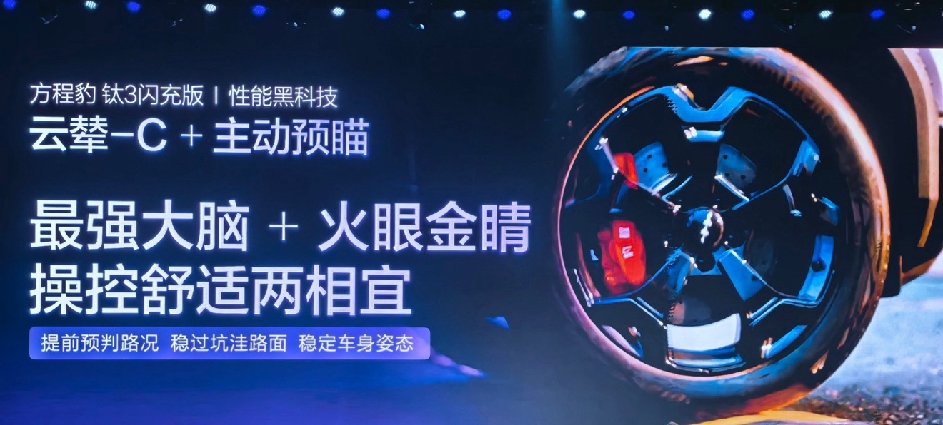 除此之外,还搭载了智能EVO+平台、前双球节麦弗逊后五连杆百万悬架、云辇-C智能阻尼车身控制系统、“天神之眼”辅助驾驶,方程豹专属AI智能座舱和钛7同款智慧生态等,满足既要又要的用户需求,算得上全面又全能。