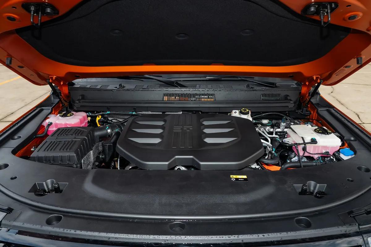 动力方面,真不愧越野爱好者的福音,启动纵横G700的瞬间,我就知道这台车不简单,搭载的鲲鹏超能混动CDM-O系统综合功率665kW,综合扭矩1135N·m,百公里加速仅需4.6秒。实际驾驶中,深踩油门的瞬间,强大的推背感如同一只无形的大手将你按在座椅上。电机与发动机协同工作的声浪独特而迷人,仿佛一头史前巨兽在耳边咆哮,高速巡航时动力储备深不可测,任何速度下的再加速都显得轻而易举,它彻底颠覆了我对"越野车笨重"的刻板印象,用实力证明硬派越野性能有跑车的灵魂。作为越野爱好者,我特别关心的还是纵横G700的通过性,官方数据非空悬状态下涉水深度900mm,开启空气悬架后达到惊人的970mm。这得益于它IP68级别的防水标准,电池、电机、电控等关键部件都能在长时间浸泡于1.5米深的水下后正常工作。在试驾场地的涉水路段,我特意选择了接近极限的深度,当车轮完全没入水中,车头激起巨大浪花时,车内却异常平静,只有水流冲刷车身的沉闷声响,几乎感觉不到任何动力衰减或电子系统的紊乱,这种"武装到牙齿"的防水性能,赋予了纵横G700超强的涉水自信。底盘调校同样出色,前双叉臂后多连杆独立悬挂,配合空气悬架和CDC连续阻尼控制系统,既能保证越野时的悬挂行程,又能提供公路行驶的舒适性,在专业越野场地,它轻松应对了炮弹坑、交叉轴、侧坡等挑战,电子限滑系统反应迅速,几乎感觉不到车轮打滑。
