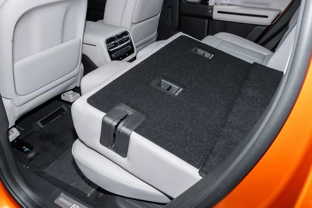纵横G700是一款中大型SUV,将硬派基因与豪华质感精妙融合。外观上,它以方正的车身线条、粗壮的前保险杠与突出的轮眉,毫不掩饰地宣告着越野血统。然而,真正的匠心藏于细节:矩阵式LED大灯如鹰眼般锐利,贯穿式尾灯在夜色中极具辨识度,而“梅里橙”哑光车漆更是在光影下展现出独特的金属质感,将力量与美学平衡得恰到好处。拉开车门,粗犷的印象瞬间被颠覆,大面积Nappa真皮的细腻触感、木纹饰板的温润点缀,以及金属按键的精致反馈,共同营造出远超传统越野车的豪华座舱,车身长5198mm、车宽2050mm、车高1956mm,奠定了纵横G700又大又正的,方盒子造型,而2870mm的超长轴距,确保了后排的宽绰空间,即便是身高1米8的乘客也能轻松舒展,毕竟现在都是大高个,空间太小,真的很吃力。更令人惊喜的是后备箱的惊人潜力,放倒后排座椅即可化身一张舒适的双人床,为热爱户外露营的家庭,提供了一个移动的、充满无限可能的专属空间,回想以前很多装备必须取舍,现在有了纵横G700这样的大后备箱,再也不用担心装不下了。